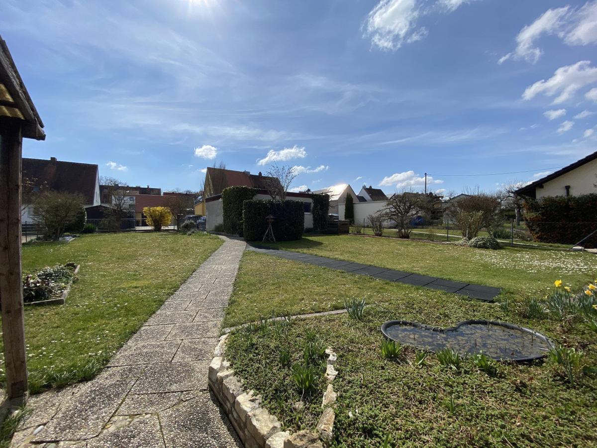 Das ca. 695 m² große Grundstück ist voll erschlossen, bietet viel Platz und überzeugt durch eine ruhige, grüne Atmosphäre.
