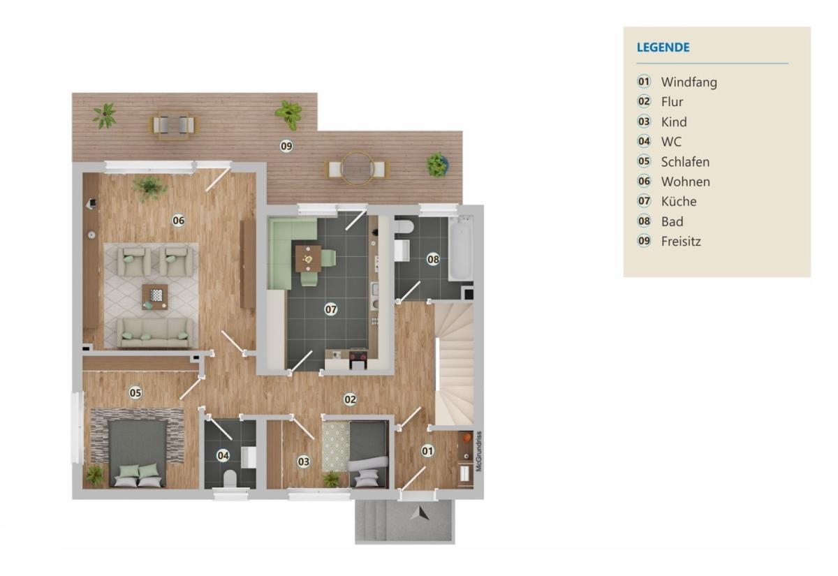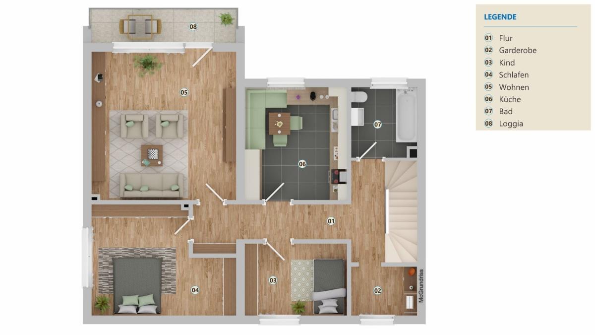 - Große Terrasse und überdachter Balkon (Loggia) für hohen Wohnkomfort