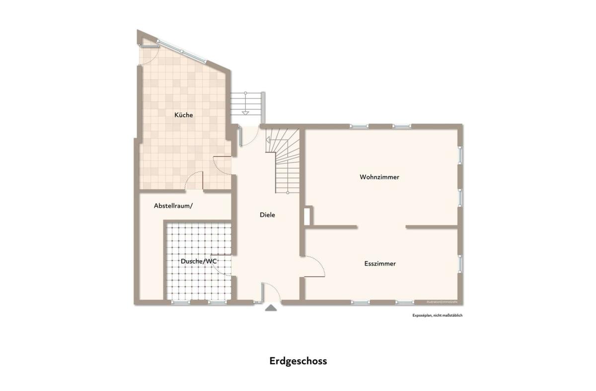 Im Erdgeschoss betreten Sie den imposanten Flur, von welchem Sie alle Räume erreichen. Ihnen steht ein großer Wohn-/Essbereich, eine geräumige Küche samt Abstellraum und ein Badezimmer zur Verfügung.