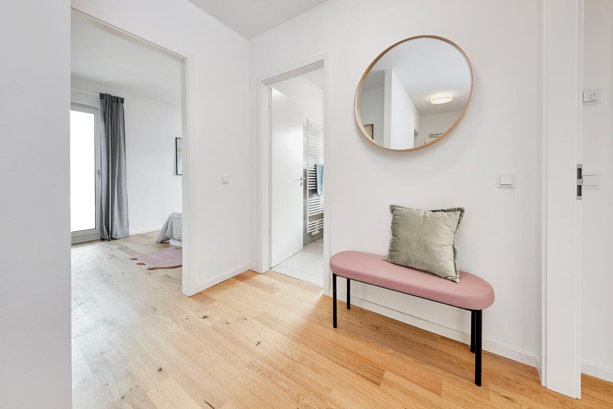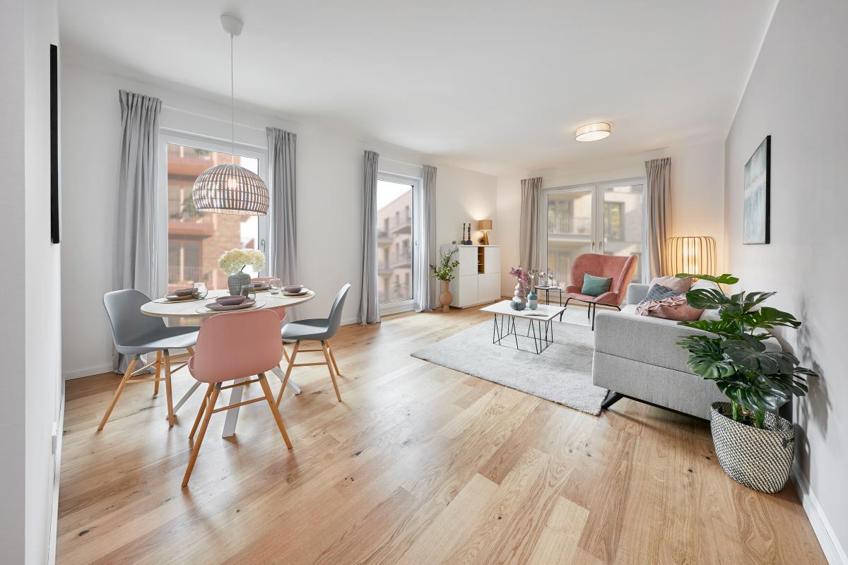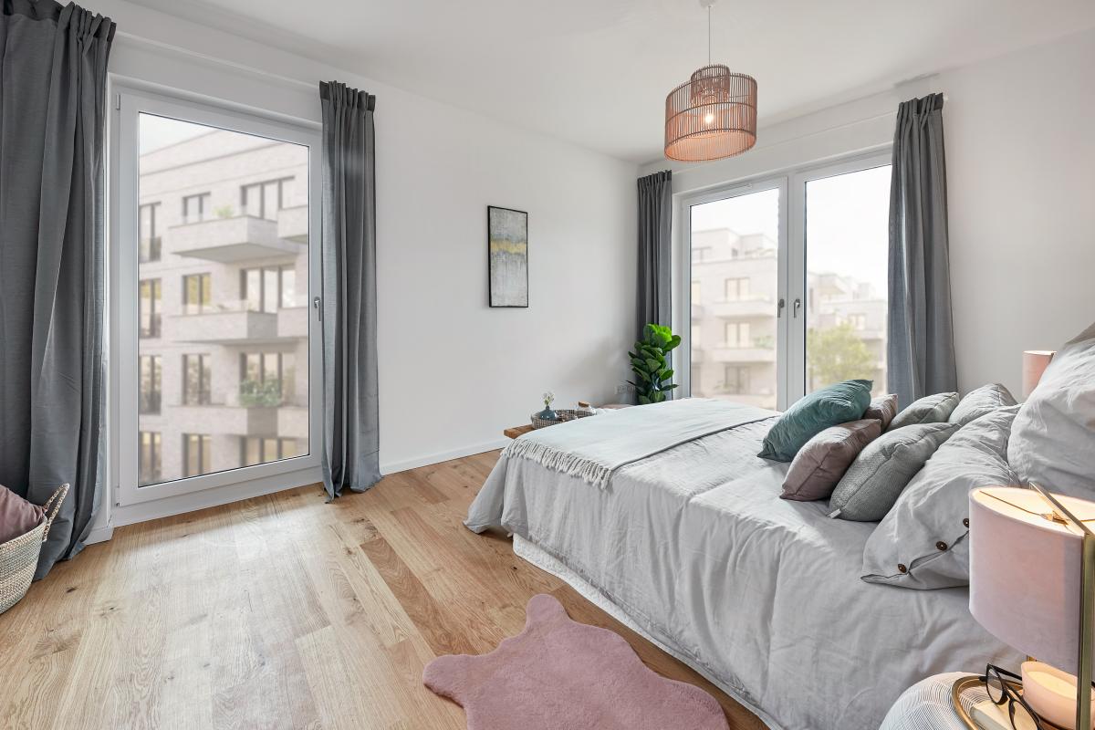 Ausgestattet mit modernen Materialien, komfortablen Armaturen und Fliesen, Standards wie Fußbodenheizung, Parkettboden und offene Wohn- und Essbereiche, erfüllen die Wohnungen nicht nur modernsten Anforderungen, sondern spiegeln auch den Zeitgeist des heutigen Wohnens wieder. Weiterhin warten viele weitere Highlights wie Fitnessinseln, Lastenfahrräder, Spielplätze u.v.m. mehr auf Sie.