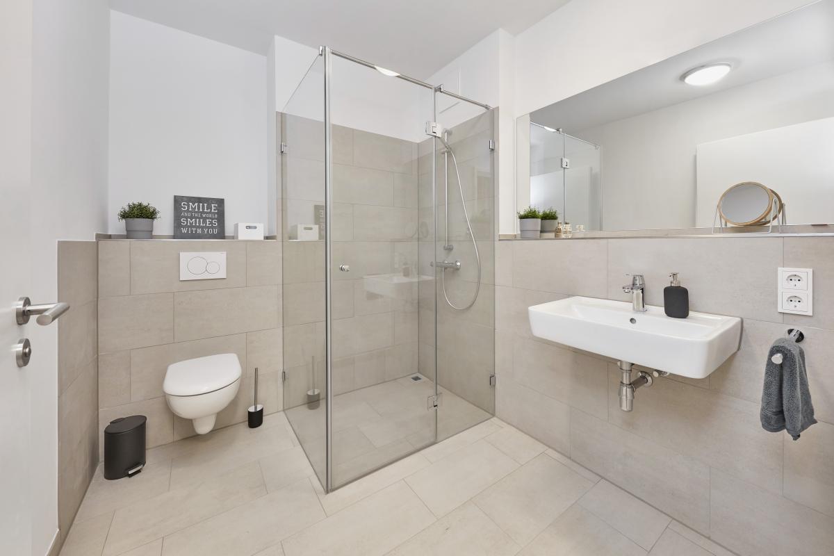 Diese Wohnung könnte zum 01.06.2025 angemietet werden. Die Wohnung ist mit einer stilvollen Einbauküche (inkl. Einbaugeräte) ausgestattet und liegt offen zum Wohnbereich. Vom Wohnbereich gelangen Sie auf die Terrasse, die zu entspannten Stunden einlädt. Das Badezimmer ist mit modernen Fliesen ausgestattet und verfügt über eine Dusche und Fenster. Die Wohnräume sind mit einem Vinyl-Boden verlegt. Für eine angenehme Wärme sorgt die Fußbodenheizung, die in der gesamten Wohnung vorhanden ist. Als Abstellfläche steht Ihnen ein Abstellraum in der Wohnung sowie ein Kellerraum zur Verfügung. Zur Wohnung gehört ein Tiefgaragenstellplatz, der mit angemietet werden muss. Bei den gezeigten Fotos handelt es sich um Beispielbilder.