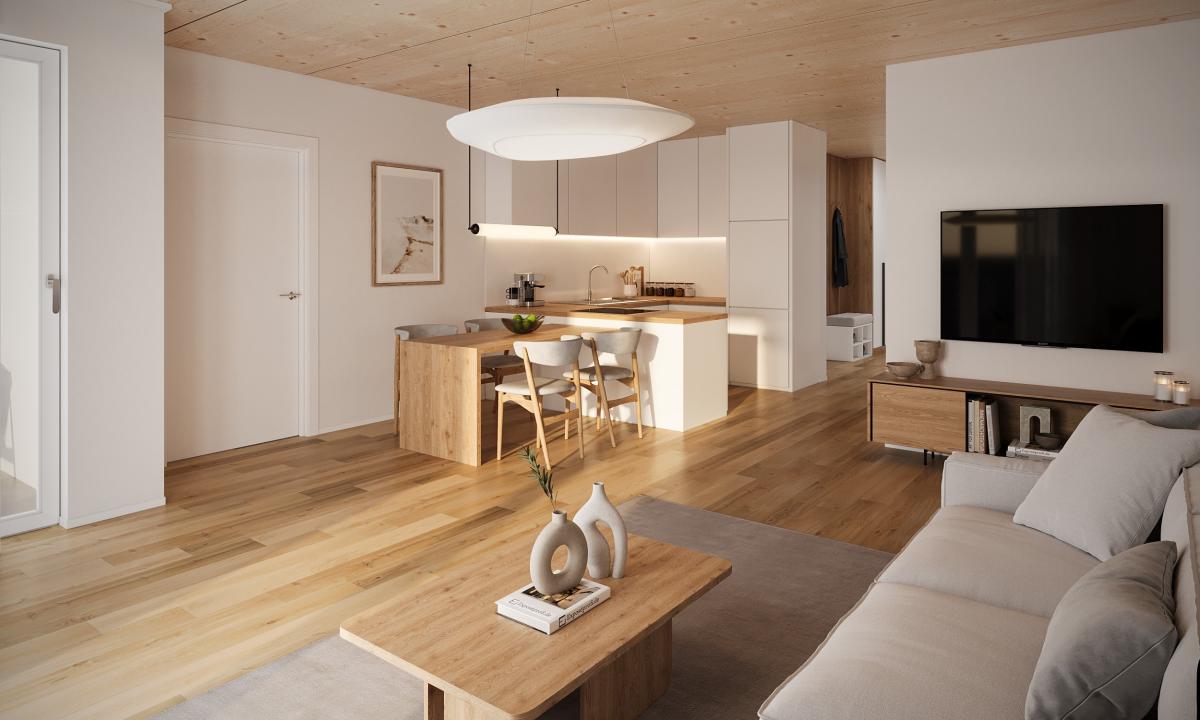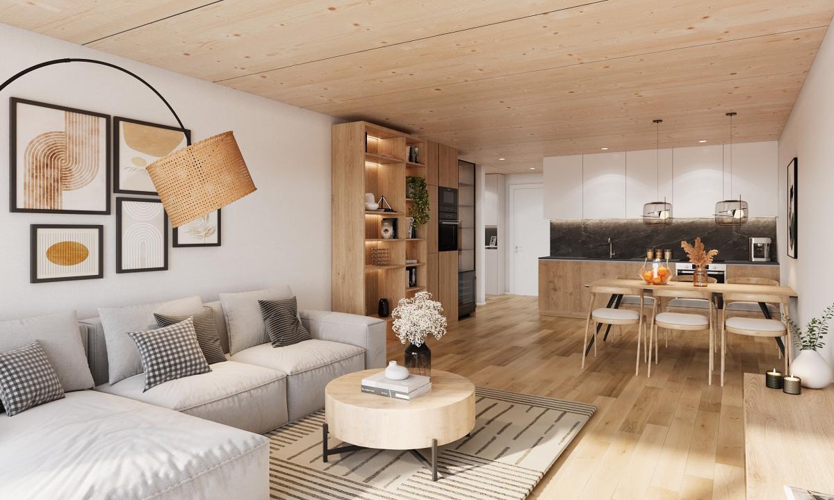 - Hochwertige sichtbare Holz-Brettstapeldecken in jeder Wohnung