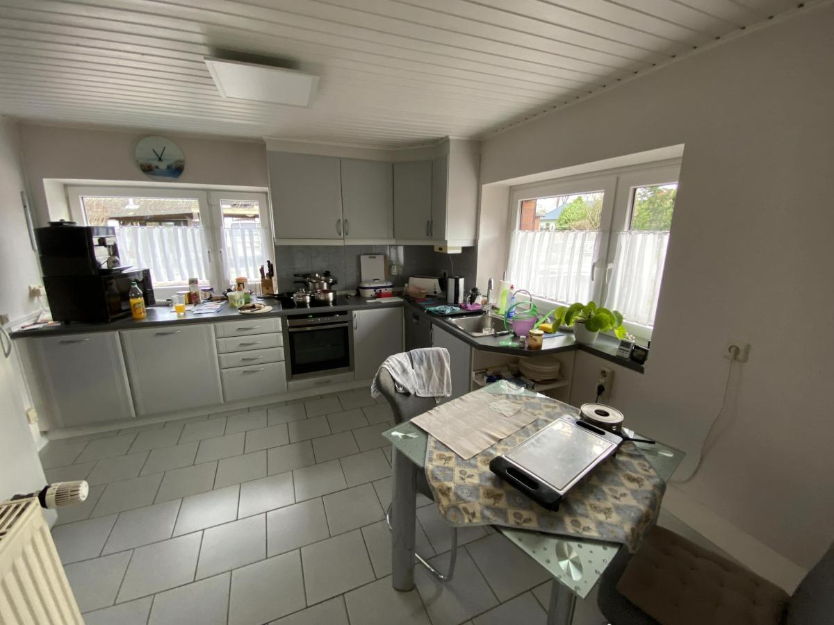 Das Herzstück des Hauses ist die großzügige Wohnküche mit angrenzender Speisekammer/Hauswirtschaftsraum. Hier lässt es sich nicht nur hervorragend kochen, sondern auch gesellig beisammensitzen. Ein Kaminofen im Wohnzimmer sorgt an kühleren Tagen für wohlige Wärme und gemütliche Atmosphäre.