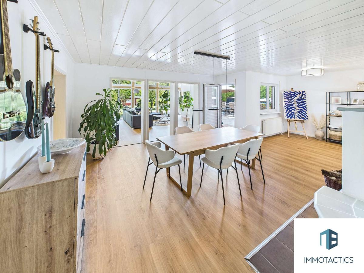 Dieses freistehende Einfamilienhaus aus den 1990er Jahren bietet auf einem großzügigen Grundstück von 950 m² eine Kombination aus naturnaher Lage, moderner Technik und durchdachter Raumaufteilung – ideal für Familien, die zukunftssicher und gleichzeitig entspannt im Grünen leben möchten.
