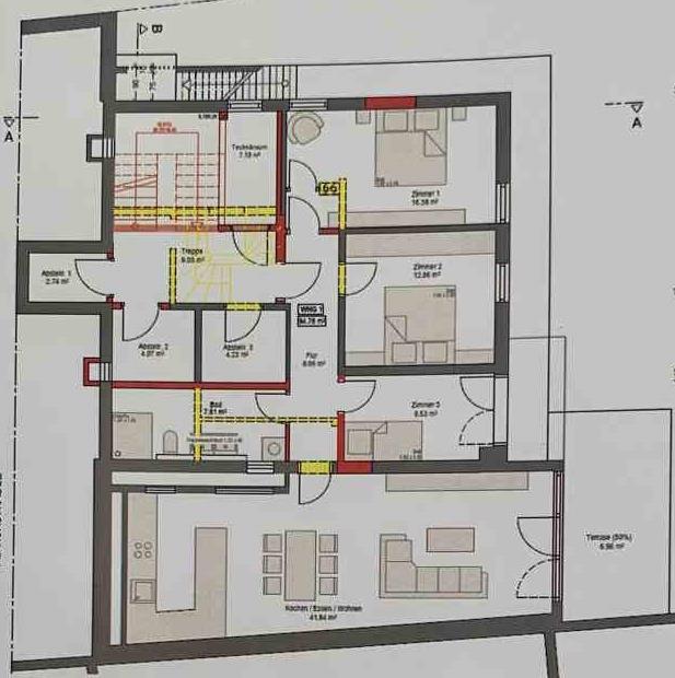 Die zweite Wohneinheit im Obergeschoss bildet ein charmantes Pendant dazu. Mit vier lichtverwöhnten Zimmern bietet sie nicht nur eine klare, elegante Raumaufteilung, sondern auch einen unmittelbaren Zugang zur herrlichen Südterrasse auf dem Dach der Garage. Dieser Außenbereich wirkt fast wie eine eigene kleine Bühne unter freiem Himmel – ein Platz, an dem morgens die Sonne grüßt und abends der Blick ins Tal zur stillen Meditation wird.
