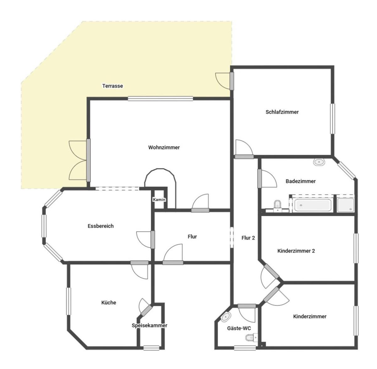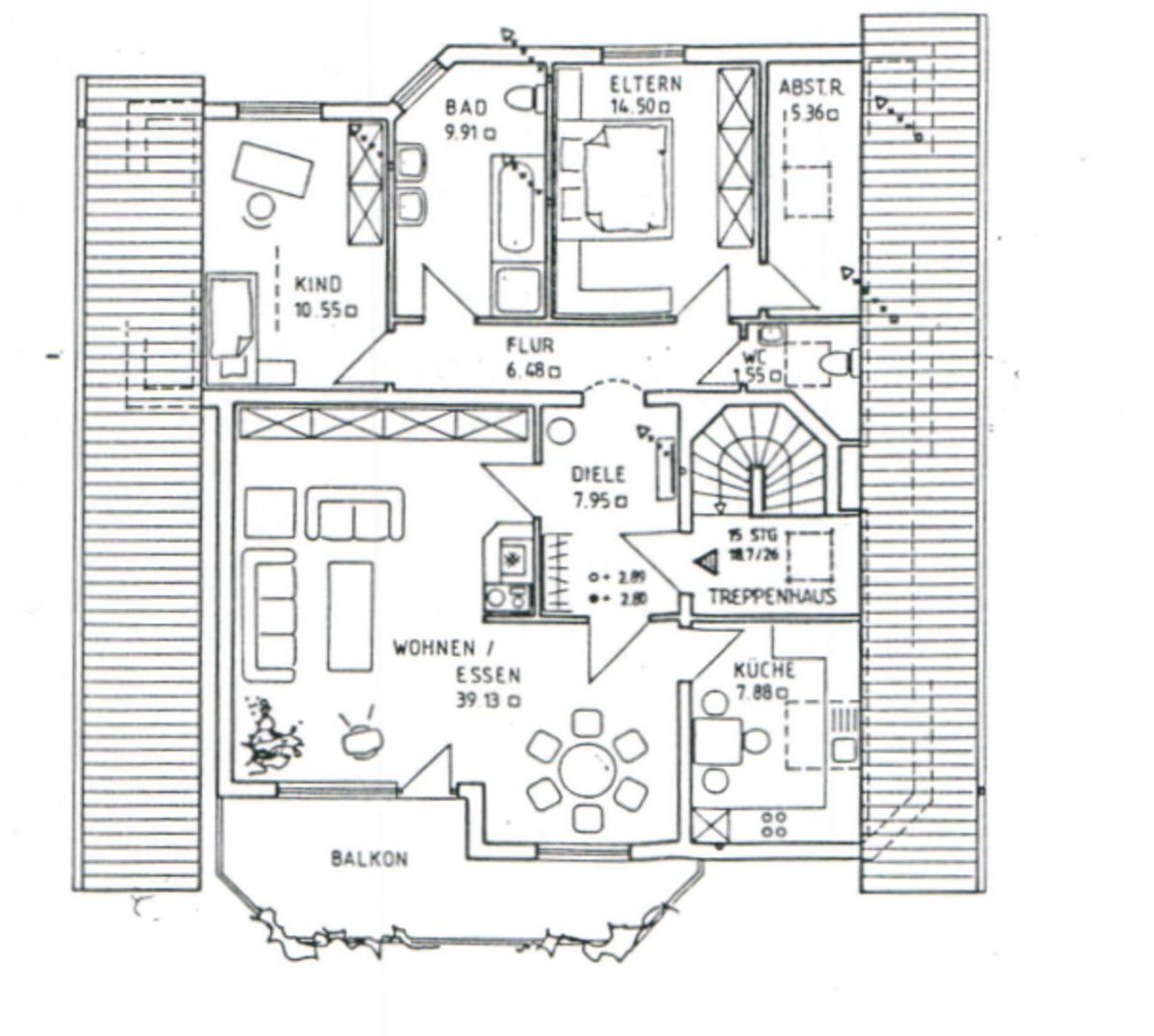 Die größte Wohneinheit befindet sich im Erdgeschoss, biete viel Platz mit 5 Zimmern und einem gemütlichen Kaminofen. Auch die Wohnung im Dachgeschoss ist mit einem Kaminofen ausgestattet.