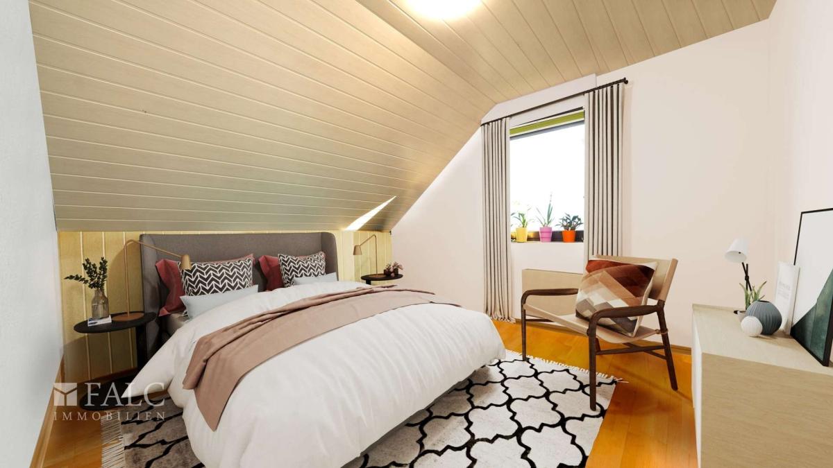 Zwei weitere helle, freundliche Zimmer eignen sich hervorragend als Schlaf- oder Kinderzimmer. Große Stauräume unter den Schrägen lassen sperrige Dinge wie den Staubsauger oder die Sporttasche verschwinden. Eine Küche in klassischen Brauntönen, einem Backofen, einem Cerankochfeld, einer Dunstabzugshaube und einer Kühl- und Gefrierkombination komplettiert das Stockwerk und kann daher auch als abgeschlossenen Wohneinheit fungieren. Möchten Sie den Teenie oder die Schwiegermama für mehr Privatsphäre ausquartieren oder Ihr Bankkonto mit einer zusätzlichen Geldeinnahme durch Vermietung füllen? Beides wäre möglich.