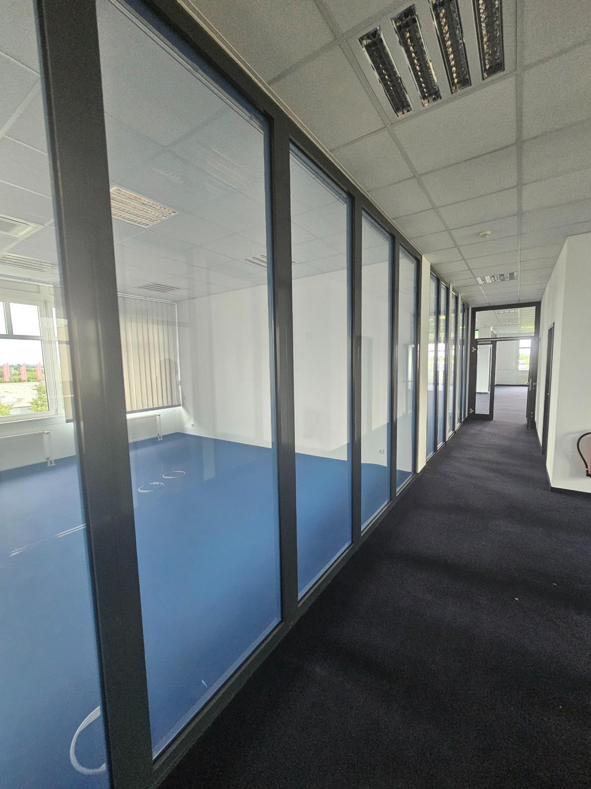 - Zwischenwände zum Teil aus Glas mit Innenjalousien