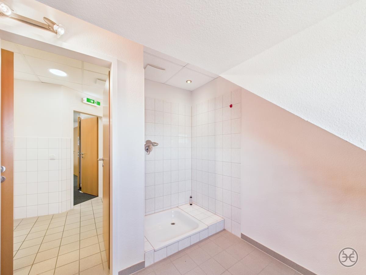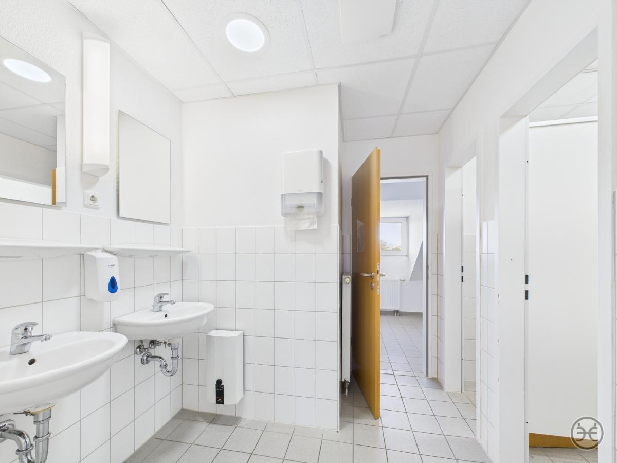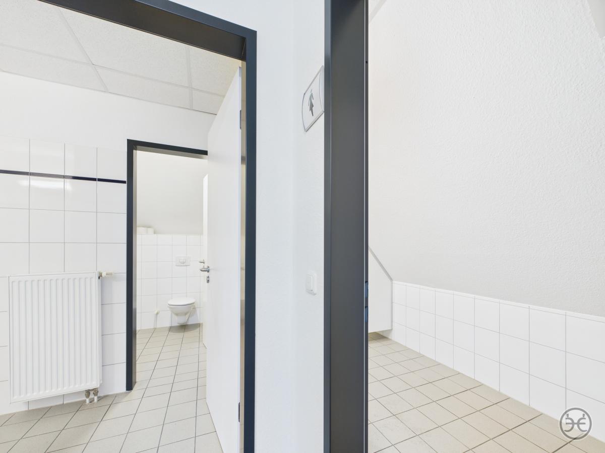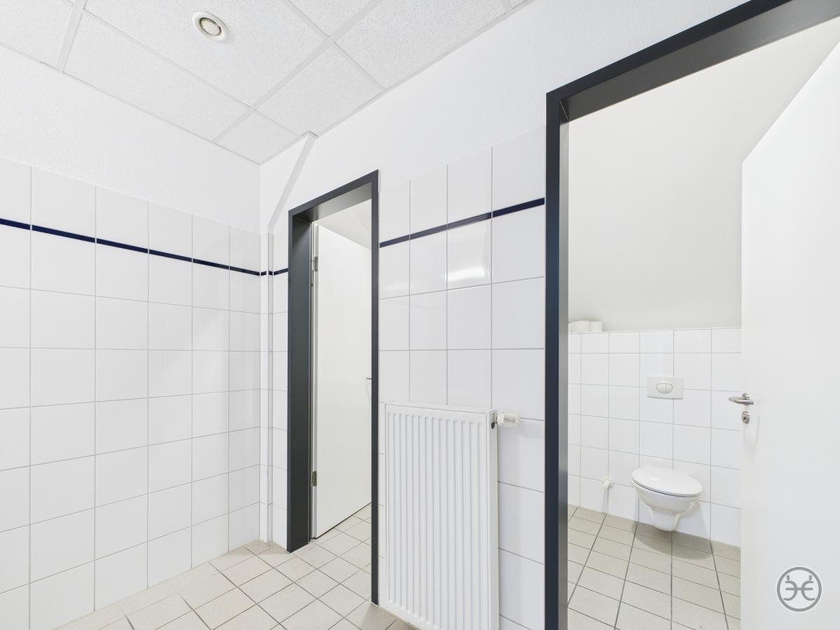 Dazu in den jeweiligen Gebäudeabschnitten jeweils Damen- und Herren WCs und im größeren Teilbereich sogar mit jeweils einem separaten Duschraum!