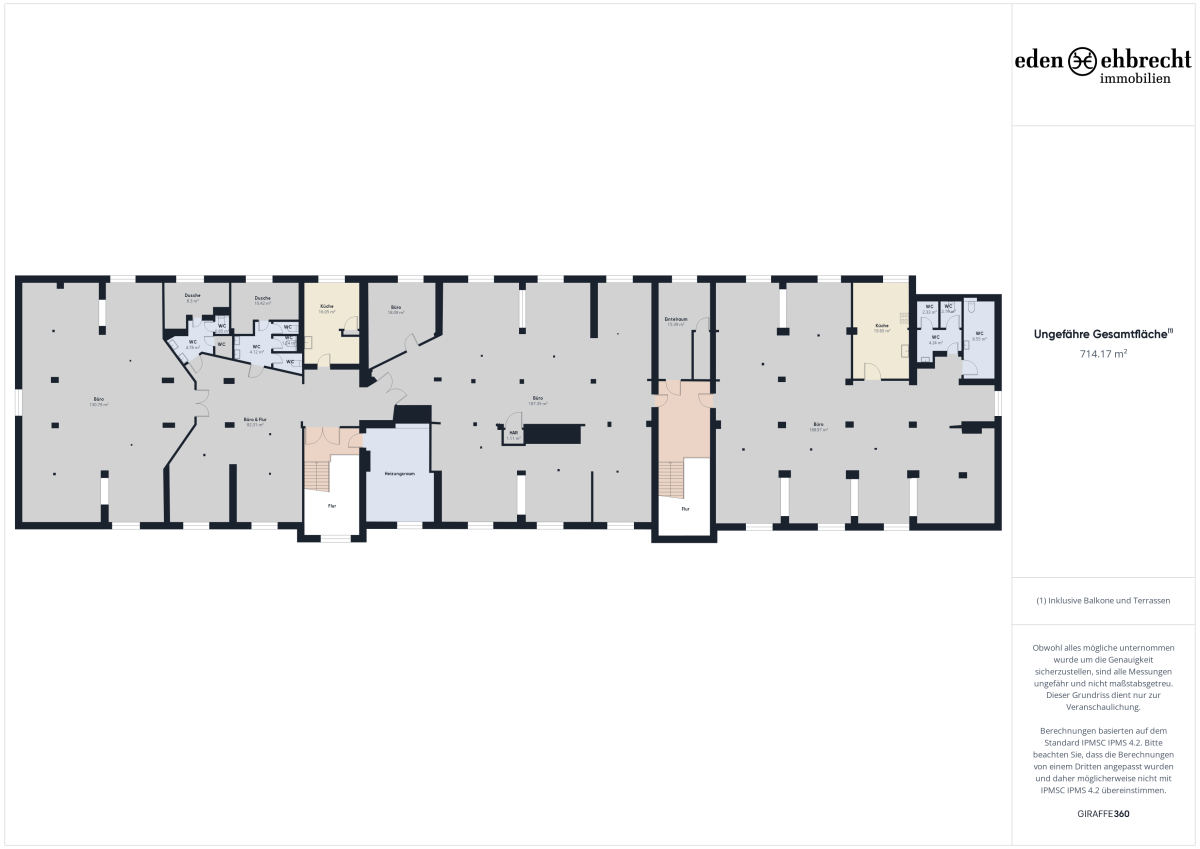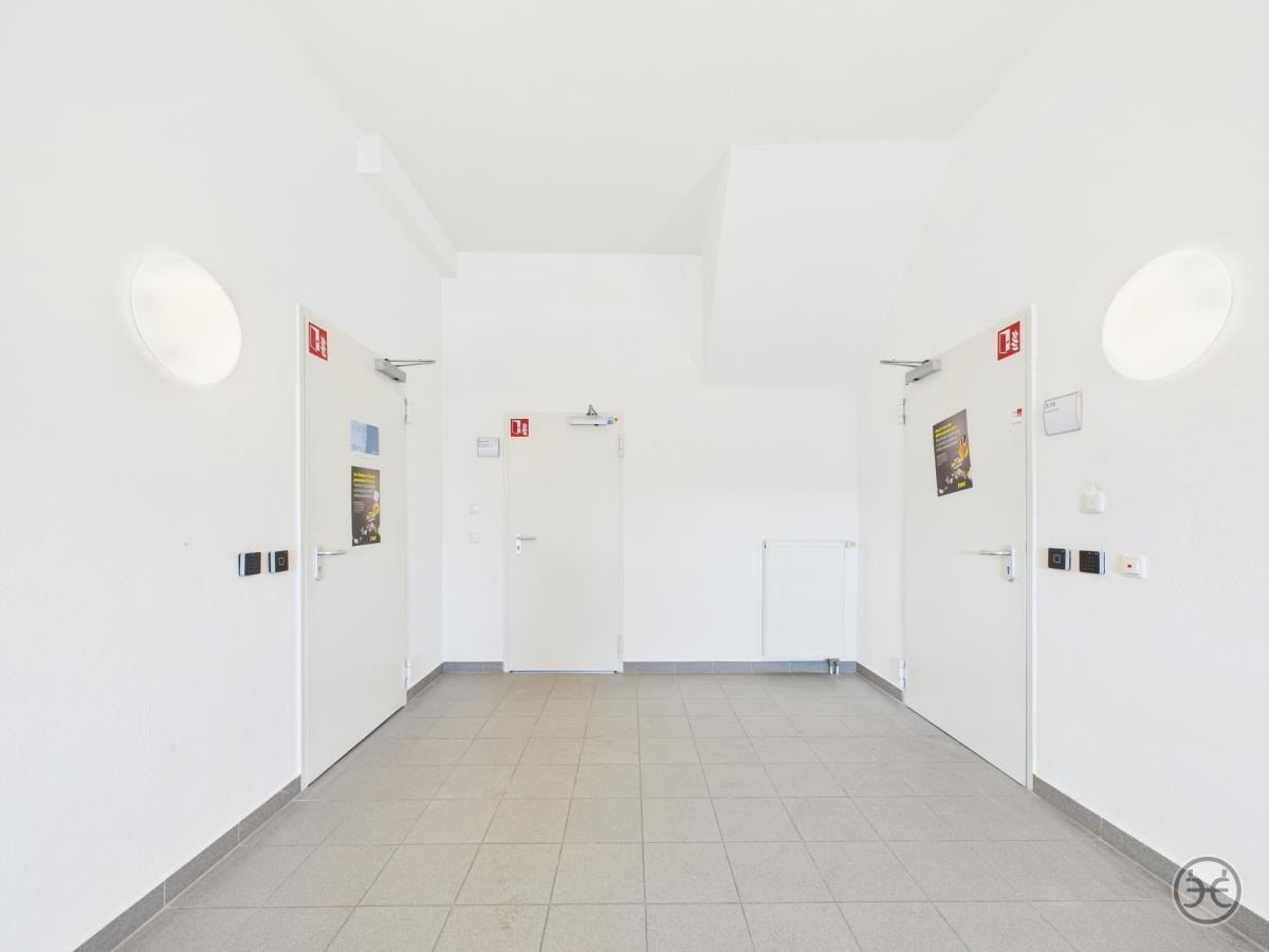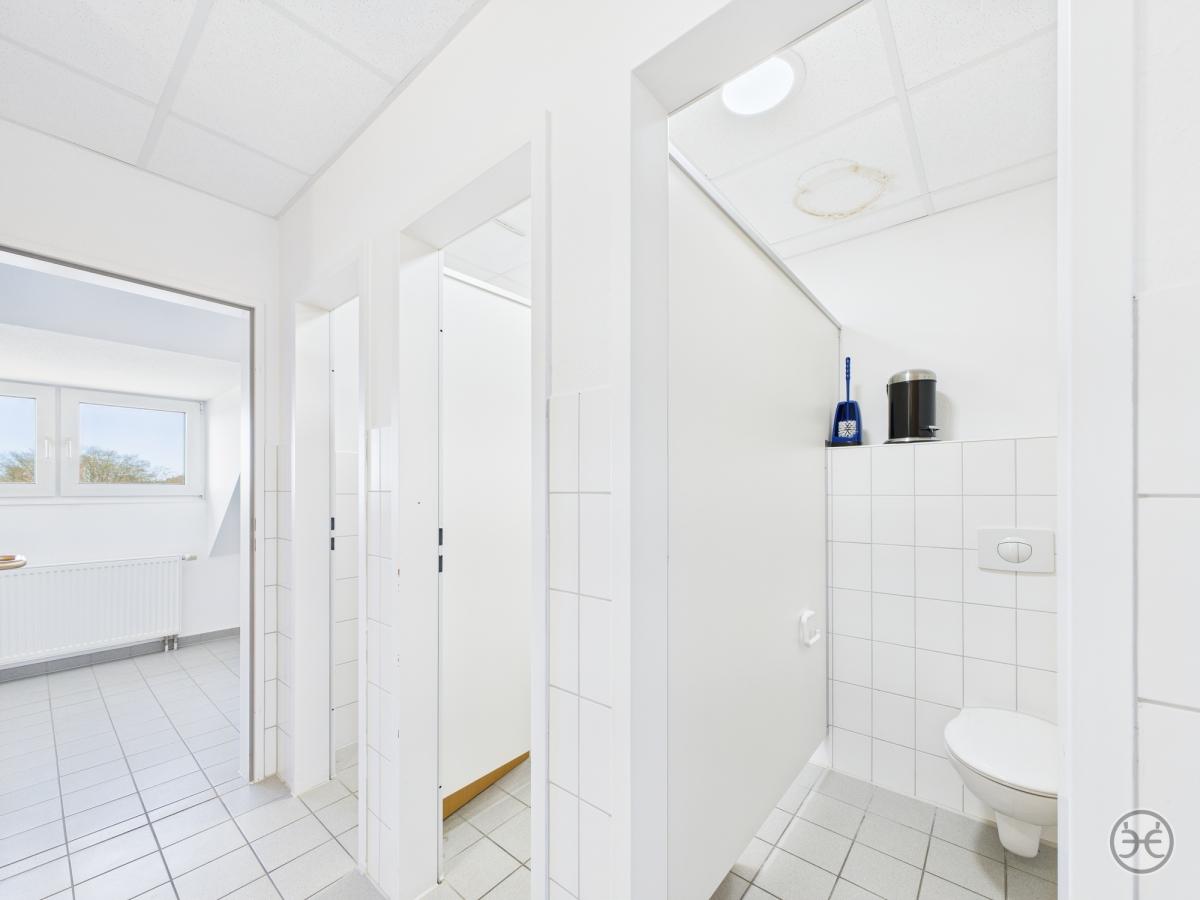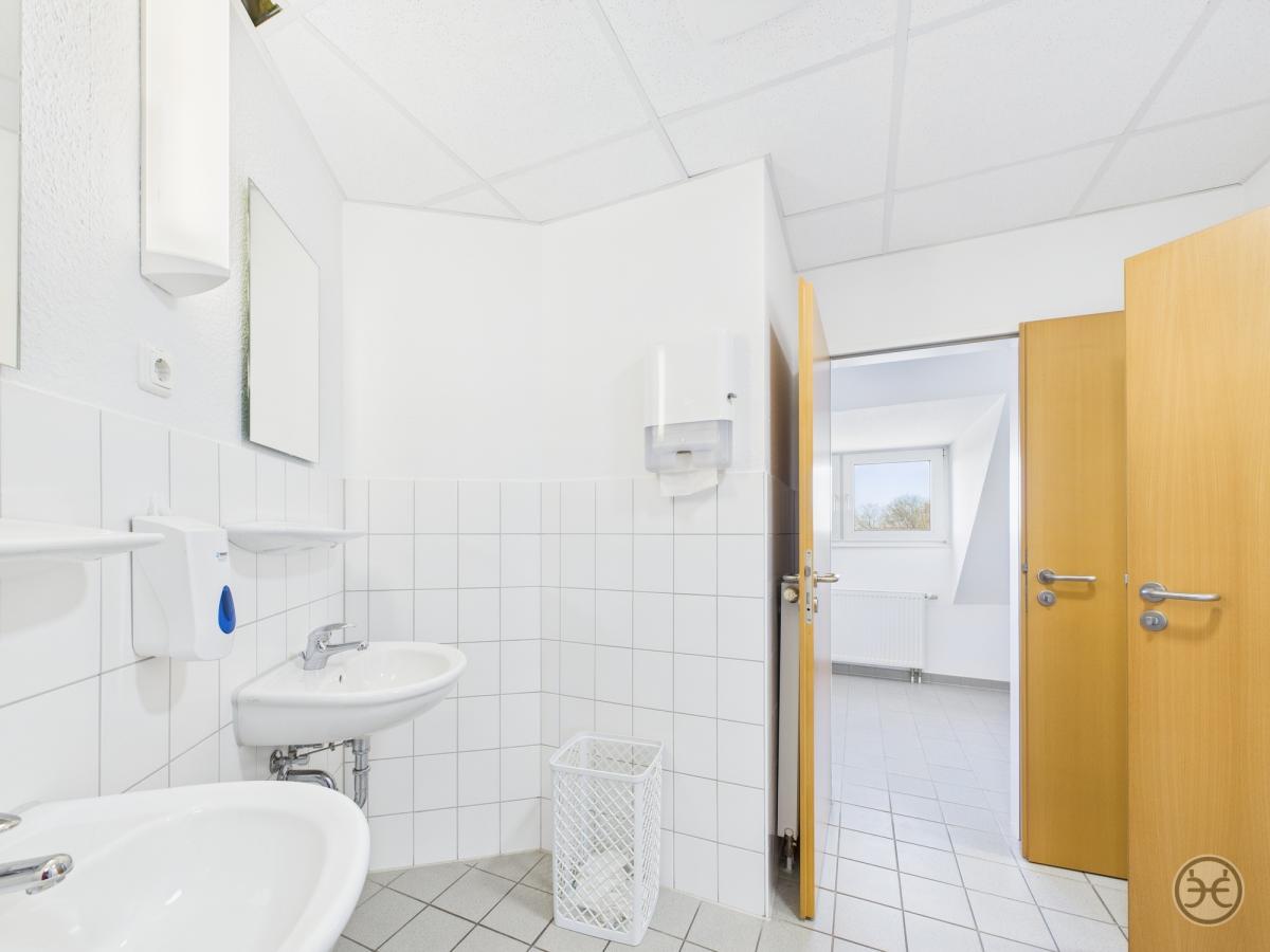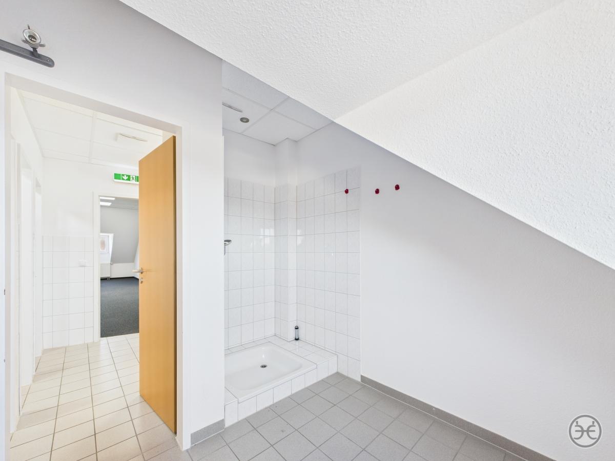 Dazu in den jeweiligen Gebäudeabschnitten jeweils Damen- und Herren WCs und im größeren Teilbereich sogar mit jeweils einem separaten Duschraum!