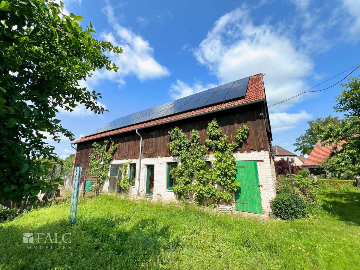 Im Außenbereich erwartet Sie neben dem gepflegten Garten eine weitere überdachte Terrasse, in deren Nähe sich die großzügige Scheune befindet. Diese ist aktuell in ein Atelier im vorderen Bereich und in Lagerfläche mit Hühnerstall im hinteren Teil aufgeteilt – ideal für kreative Projekte, Hobbyhandwerk oder Tierhaltung. Ein zusätzlicher Schuppen auf dem Grundstück bietet weitere Abstellmöglichkeiten für Gartengeräte, Fahrräder oder Brennholz. Abgerundet wird das Angebot durch eine Photovoltaikanlage auf dem Scheunendach, eine moderne E-Ladestation am Haus sowie bis zu drei PKW-Stellplätze auf dem Hof.