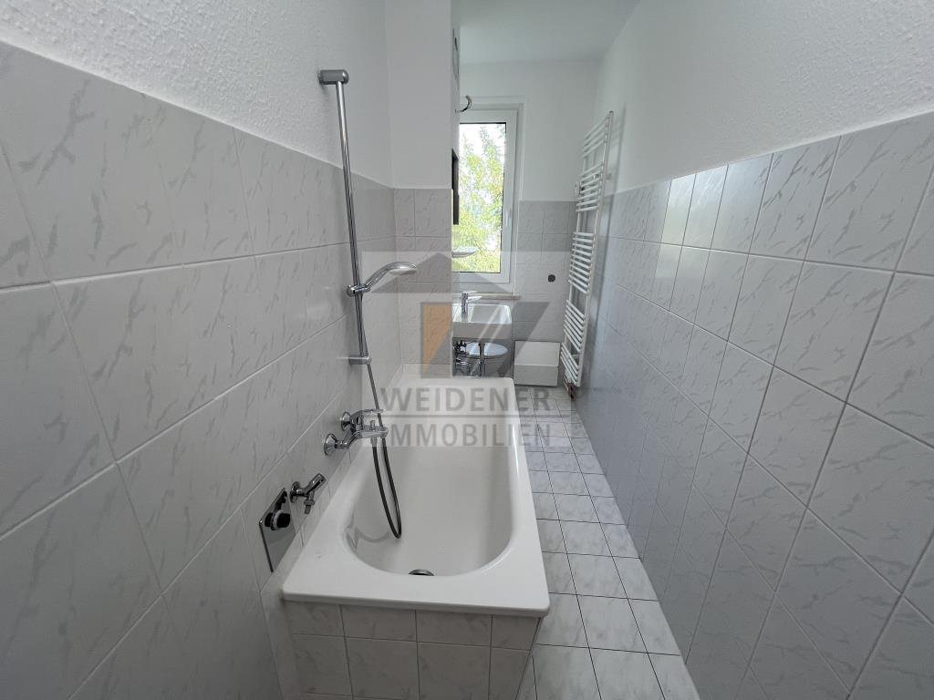 - Bad mit Fenster, Wanne, Fliesenspiegel, Bodenfliesen und WM-Anschluss