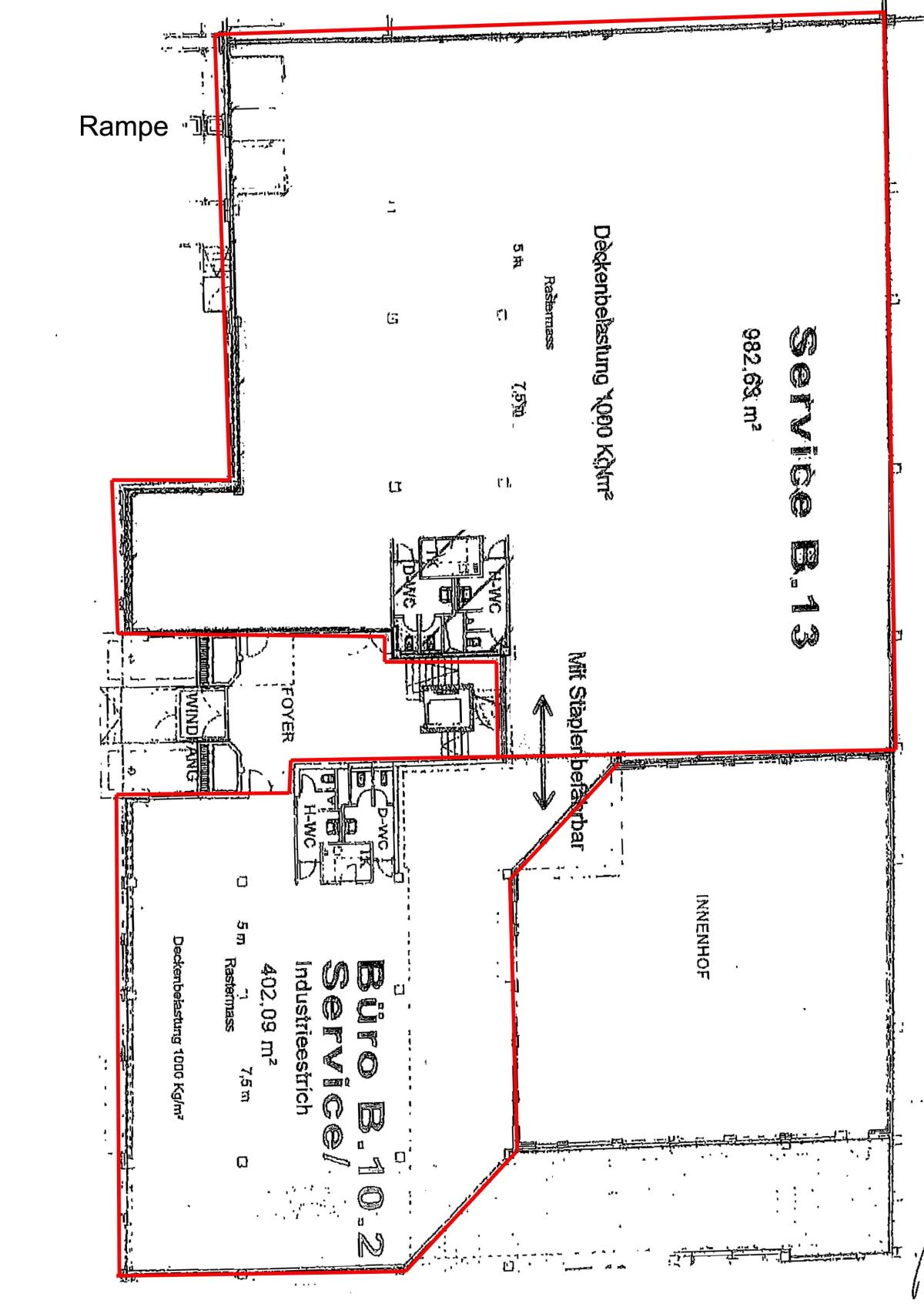 Bei dieser Immobilie handelt es sich um 2 miteinander verbundene Lagerhallen im EG, derzeit bestehend aus Halle B10.2 und Halle B13. Beide Bereiche können auch wieder geteilt und einzeln vermietet werden. Jeder Bereich hat einen eigenen Eingang, 3 WCs + 1 Urinal und 1 Teeküchenanschluss.
