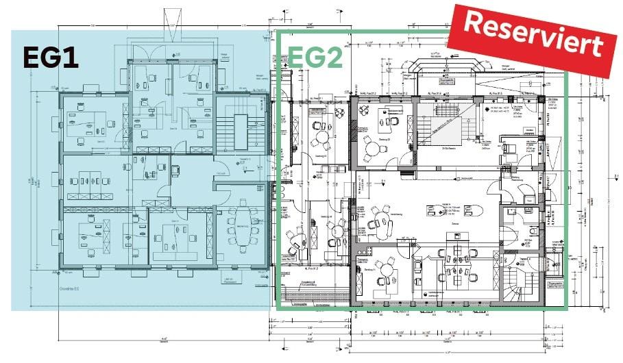 EG 2 ca. 233 m² mit ca. 23 Arbeitsplätzen - vermietet -