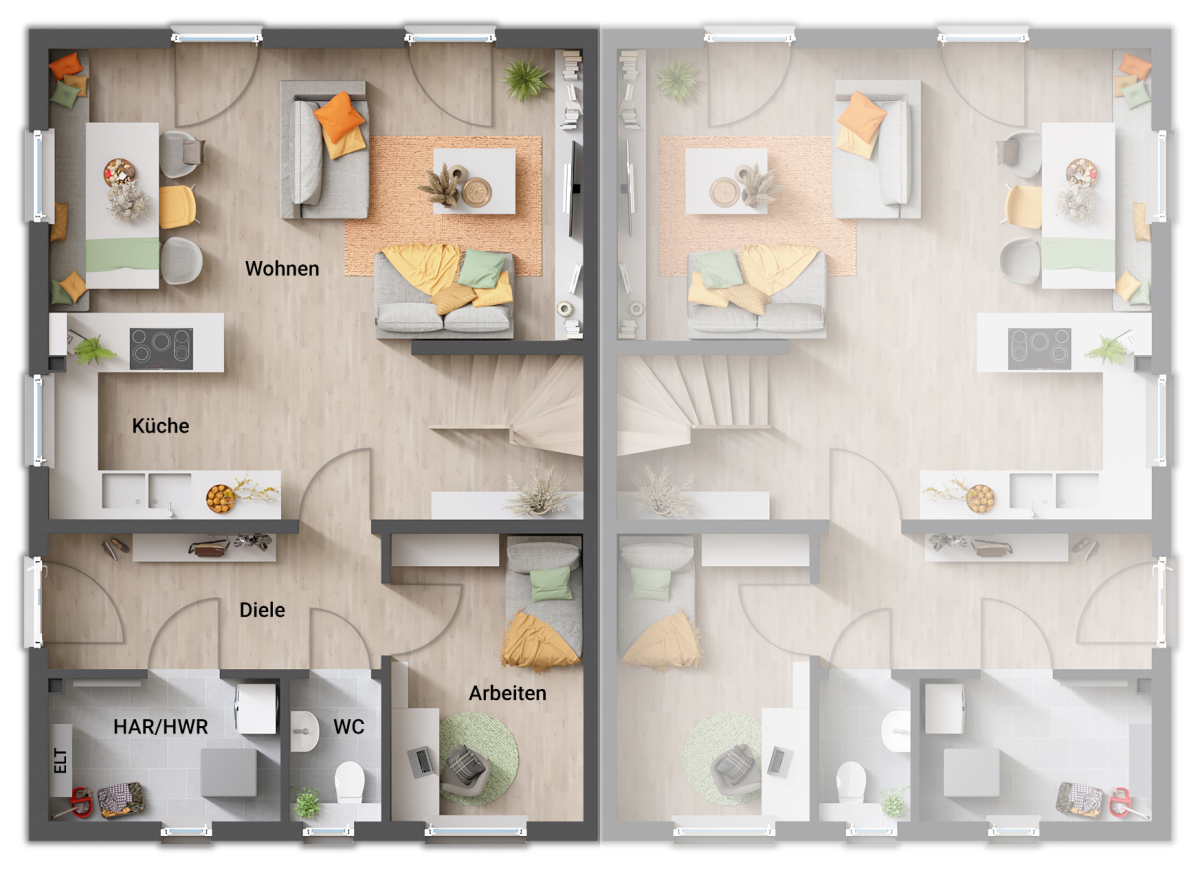 Auf gute Nachbarschaft - Das Aura ist ein Klassiker unter den Doppelhäusern, ein Synonym für gute Nachbarschaft und das Zusammenleben unter einem Dach. So werden Unabhängigkeit und Nähe ideal kombiniert.