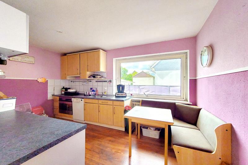 Diese im 1.Obergeschoss gelegene Wohnung verfügt mit ca. 153qm über ein Wohn-/Esszimmer, vier Schlafzimmer, Flur, Küche mit Einbauküche (2012), Wannenbad, Sonnenterrasse (120qm!). Diese Wohnung ist mit Parkett und Laminat ausgestattet. Die Wohnung wirkt hell und freundlich, denn die hohen Fenster lassen viel Tageslicht herein. Die Fenster und Zugangstüren sind alle erneuert bzw. werden gerade erneuert und sind auf aktuellem Stand. Die Wohnung wird derzeit zentral von einer Pelletheizung beheizt. Es besteht aber auch die Möglichkeit, den im Keller des Hauses liegenden Gasanschluß nach oben zu führen, den Wohnungs-Heizkreislauf zu isolieren und sich eine eigene Gaszentralheizung zu installieren. Neugierig geworden? Vereinbaren Sie einen Besichtigungstermin und lassen Sie sich diese interessante Immobilie nicht entgehen!
