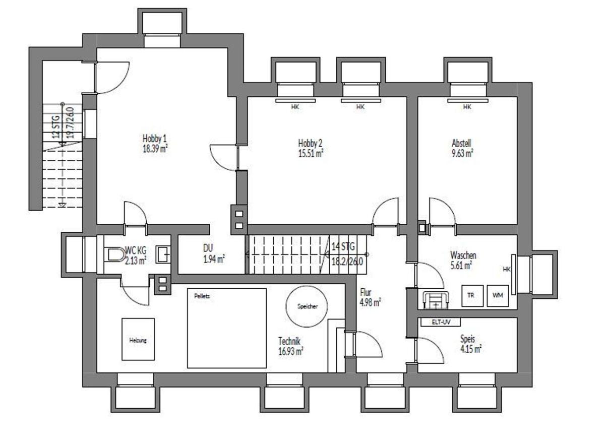 - Einen Technikraum mit Pelletheizung, Warmwasserspeicher und Wasseraufbereitungsanlage