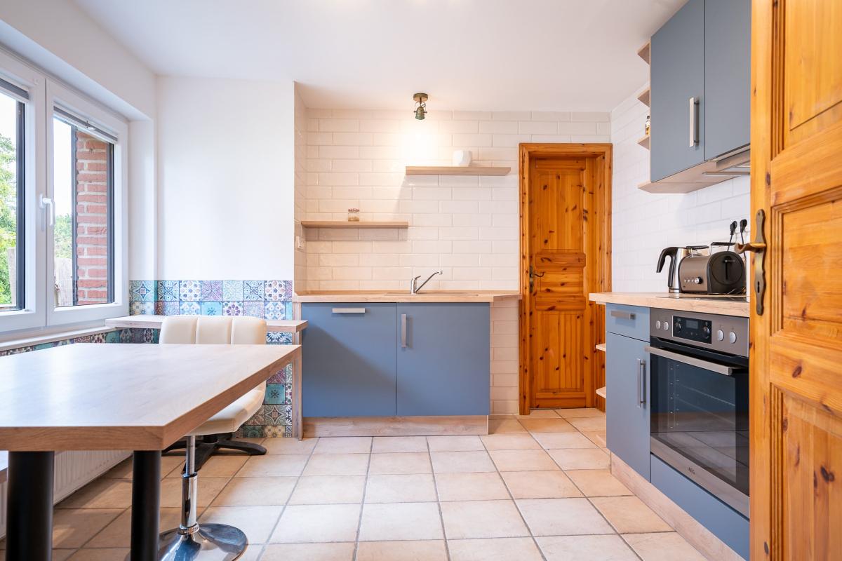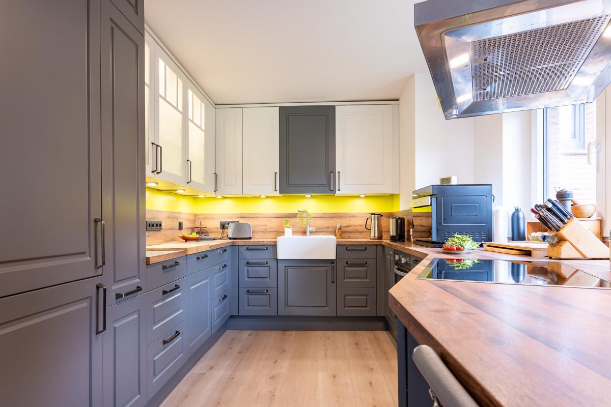 - Wohn-und Esszimmer mit moderner Einbauküche. Ein Kaminofen sorgt hier für eine angenehme Wärme