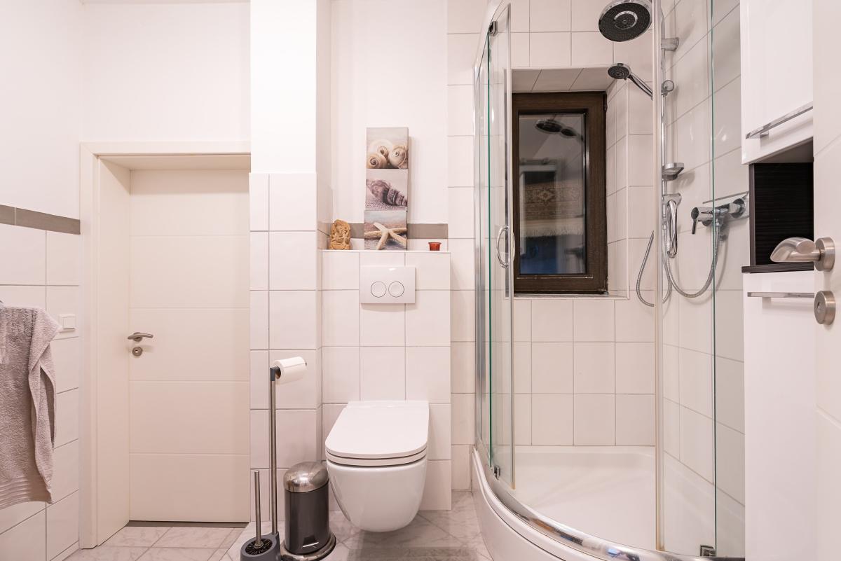 - Badezimmer mit Wanne, Handtuchheizkörper und WC (Fußboden-Erwärmung über Rücklauf)
