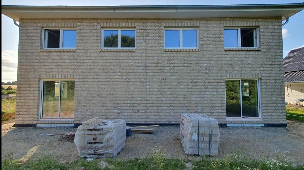 Erstbezug 2025! Sie ziehen in ein energieeffizientes KfW-40-Haus mit Klinkerfassade in Beige, Photovoltaikanlage, Wärmepumpe und Energieklasse A+. Der offene Wohnbereich mit großflächiger Fensterfront bietet direkten Zugang auf die sonnige 20 m² große Terrasse mit Blick ins Grüne – perfekt für entspannte Familienmomente oder gesellige Abende.