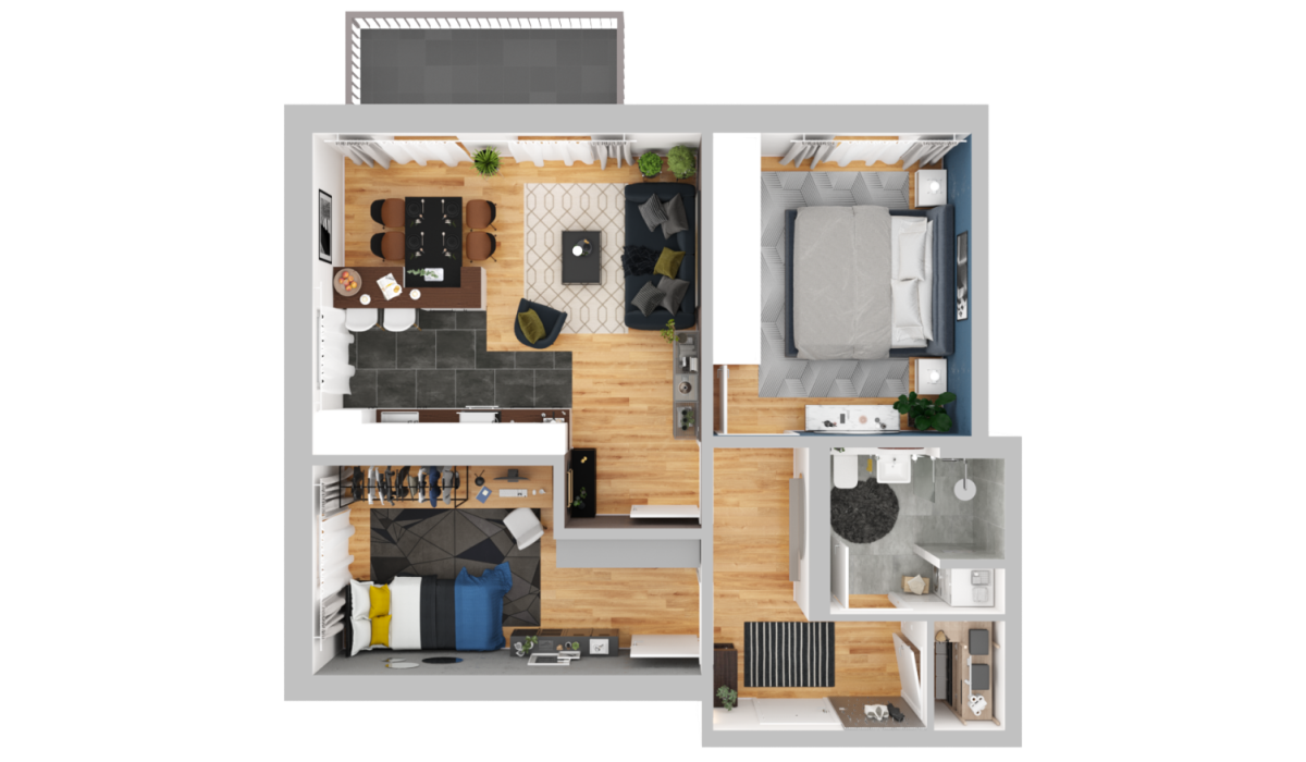 Einzimmerwohnungen bis hin zu luxuriösen Penthouse Wohnungen mit herausragender Qualität. Die Wohnungen verteilen sich auf Erdgeschoss, 1. und 2. Obergeschoss sowie die Penthouse-Etage.