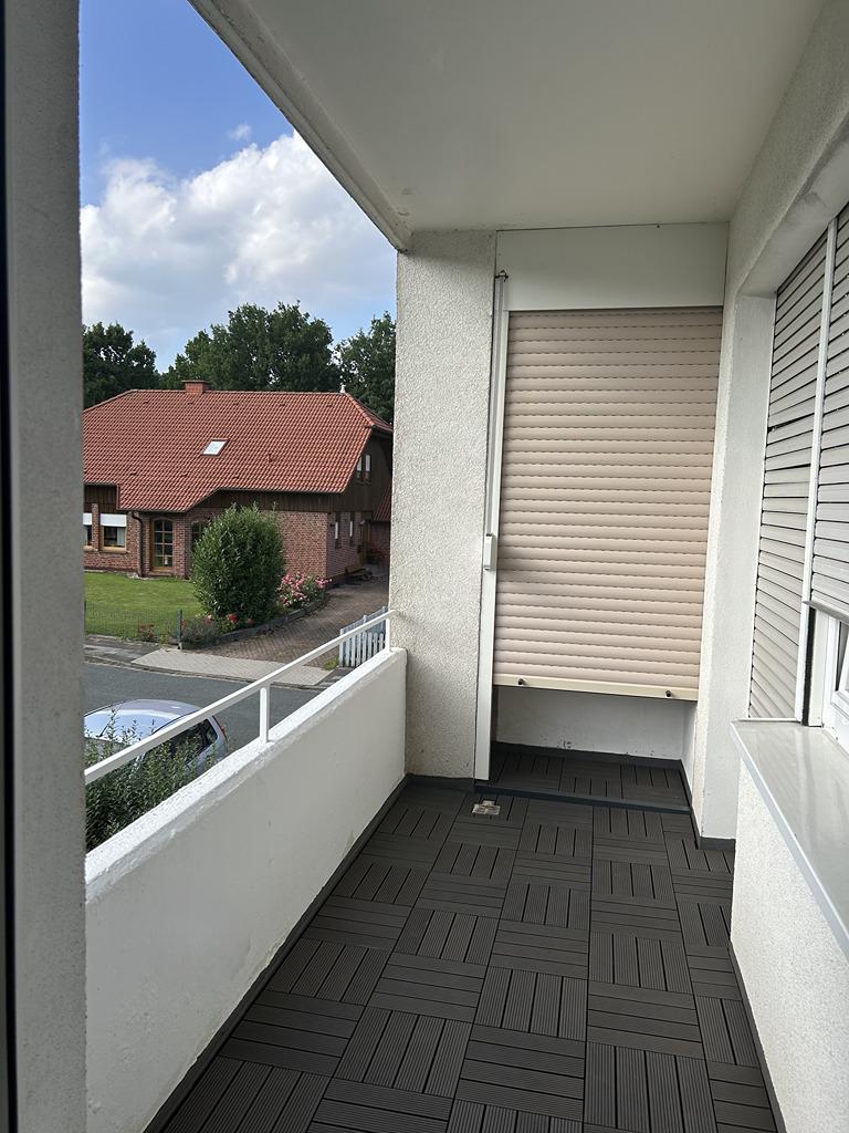 Vom Wohn- u. Arbeitszimmer haben Sie einen herrlichen Blick auf ihren überdachten Balkon (Südlage) mit separaten Abstellkammer sowie den grünen Garten mit Obstbäumen und einem Gartenhaus. Der Balkon ist frisch saniert und verfügt über moderne hellgraue Platten sowie eine separate Abstellkammer mit Schutz vor Witterung.
