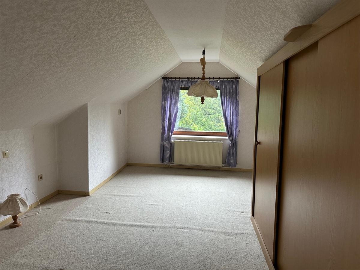 Bereits beim Betreten des Hauses empfängt Sie ein einladender Windfang mit ausreichend Platz für eine Garderobe. Von hier aus gelangt man sowohl ins Obergeschoss als auch in den zentralen Flur des Erdgeschosses, von dem aus alle weiteren Räume erreichbar sind. Das Tageslichtbad ist mit einer Dusche, einem Bidet, WC und einem Waschbecken ausgestattet. Die Küche verfügt über alle notwendigen Anschlüsse – hier haben Sie die Möglichkeit, Ihre persönliche Traumküche nach individuellen Vorstellungen zu gestalten. Zwei flexibel nutzbare Zimmer bieten sich als Schlafzimmer, Kinderzimmer, Büro oder Gästezimmer an. In der Vergangenheit kam es in Teilen des Hauses zu einem Wasserschaden, der jedoch vollständig und fachgerecht von einem spezialisierten Unternehmen beseitigt wurde. Im Zuge der Sanierung wurden in den beiden Zimmern, dem Flur sowie in der Küche neuer Estrich verlegt und sämtliche Wände frisch gestrichen – der Bereich präsentiert sich heute in modernisiertem Zustand. Das Herzstück des Erdgeschosses bildet das großzügige Wohn- und Esszimmer mit direktem Zugang zur sonnigen Terrasse und dem weitläufigen Garten. Der Außenbereich ist liebevoll angelegt und bietet nicht nur viel Platz zur Erholung, sondern auch eine repräsentative Gartenhütte mit eigener Terrasse – ideal für gemütliche Stunden oder gesellige Anlässe im Freien. Das Obergeschoss beherbergt ein weiteres, sehr großzügiges Zimmer sowie ein separates WC – perfekt als Rückzugsort, Schlafzimmer oder Atelier nutzbar.