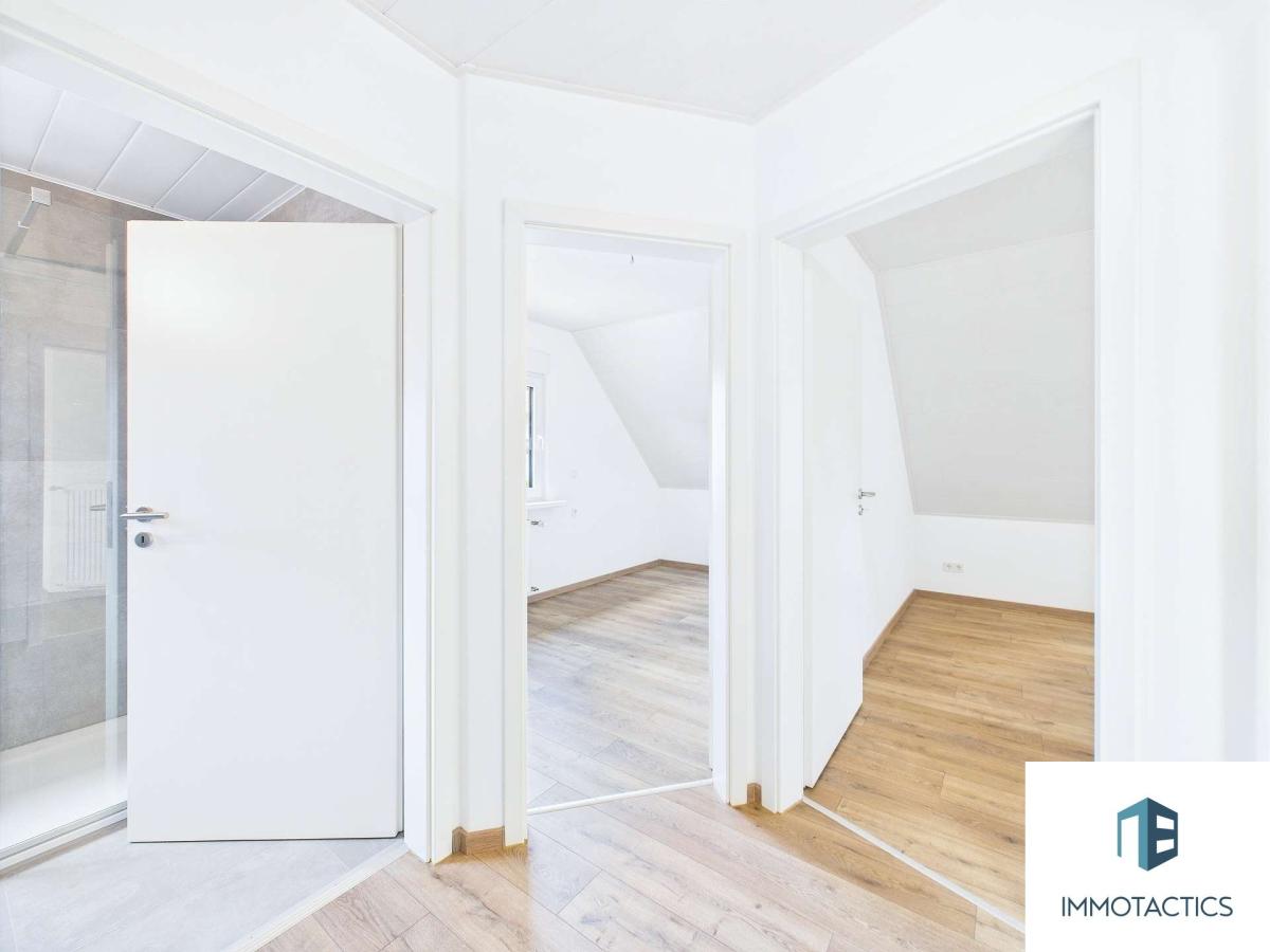 Im Obergeschoss: Zwei großzügige Schlafzimmer, ein Büro oder Kinderzimmer sowie ein hochwertig ausgestattetes Tageslichtbad mit Wanne und bodengleicher Dusche – perfekt für Familien mit Platzbedarf.