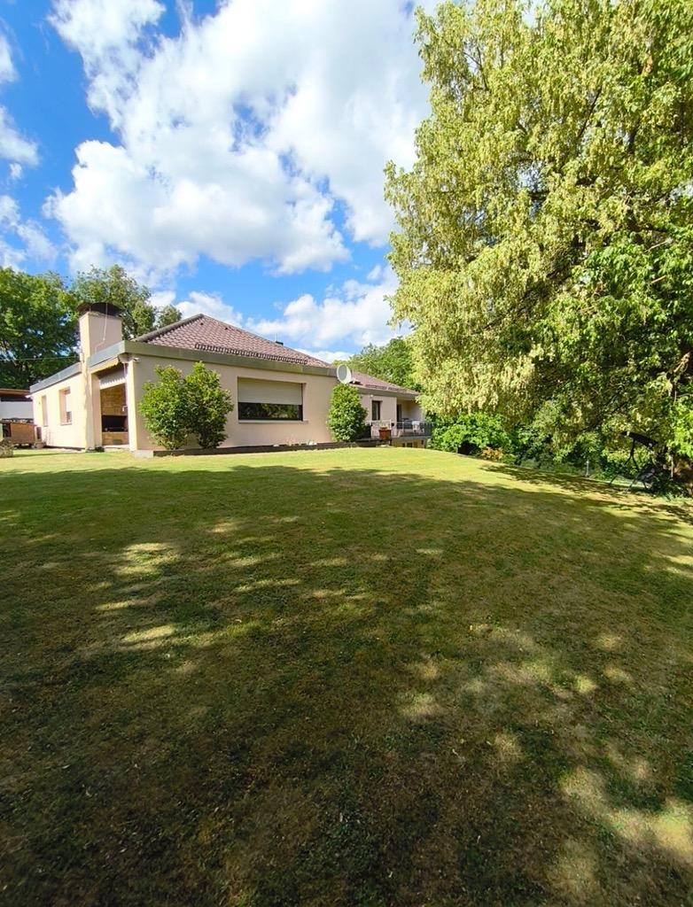 Zum Verkauf steht ein schöner, familienfreundlicher Bungalow mit Vollkeller, das 1974 erbaut wurde. Mit einer Wohnfläche von ca. 157 m² und einer zusätzlichen Einliegerwohnung im Kellergeschoss bietet dieses Haus viel Platz für individuelle Wohnbedürfnisse. Das großzügige Grundstück von ca. 5600 m² lädt mit seiner weitläufigen Gartenfläche mit parkähnlichem Flair zur freien Gestaltung ein.