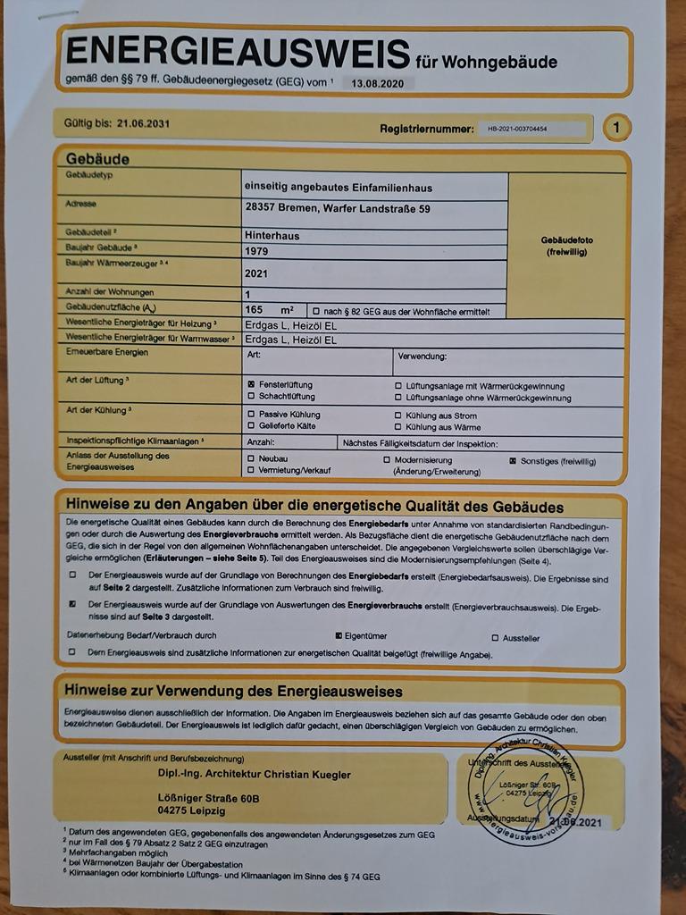Willkommen in Ihrem neuen Zuhause! Diese charmante, großzügig geschnittene Doppelhaushälfte befindet sich in begehrter, höhergelegener, sicherer und ruhiger Lage von Bremen-Alt Borgfeld – nur wenige Schritte von den idyllischen Wümmewiesen entfernt. Die hintere Haushälfte bietet Privatsphäre, Ruhe und einen herrlich grünen Blick ins Umfeld. Auf ca. 174 m² Wohnfläche verteilen sich vier helle Schlafzimmer, ein separates Büro, ein großzügiges helles Wohnzimmer sowie eine einladende Küche. Zusätzlich stehen Ihnen zwei modernisierte Badezimmer zur Verfügung – das Hauptbad im Obergeschoss mit Dusch-/Badewanne und das Gäste-WC im Erdgeschoss mit Dusche. Im Halbkeller mit Tageslichtfenstern, der zuletzt als zweites Büro genutzt wurde, eröffnen sich vielfältige Nutzungsmöglichkeiten. Zudem gibt es einen Vorratsraum (direkt von der Küche abgehend), eine separate Waschküche (im Obergeschoss) sowie einen großzügigen Heizungs-/Abstellraum. Die moderne Erdgasheizung von 2021 sowie die Fußbodenheizung im Erdgeschoss und im Obergeschossbad sorgen für angenehmen Wohnkomfort – auch in der kühleren Jahreszeit. Der liebevoll angelegte Garten, ein separater Gartenabstellraum sowie eine Garage runden dieses attraktive Angebot ab