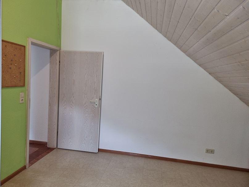 Zimmer mit Vinylboden und Raufasertapete, Einbauschränke im Kniestock;