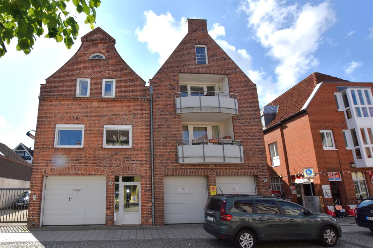 Bei der angebotenen Immobilie handelt es sich um eine großzügige 3-Zimmer-Eigentumswohnung, gelegen im 1. OG eines 1962 erbauten Doppelmehrfamilienhauses mit Gewerbefläche im Erdgeschoss. Die Mehrfamiliendoppelhaushälfte wurde in 2006 gemäß WEG aufgeteilt und verfügt, gemäß Teilungserklärung, über zwei Wohneinheiten in den Geschossen sowie eine Teileigentumseinheit im Erdgeschoss des Hauses, welche aktuell als Durchfahrt zu dem in erster Reihe am Wasser befindlichen Haus, Vorderreihe 33, genutzt wird.