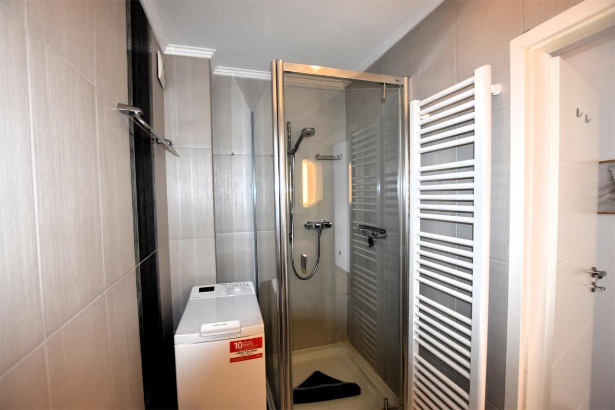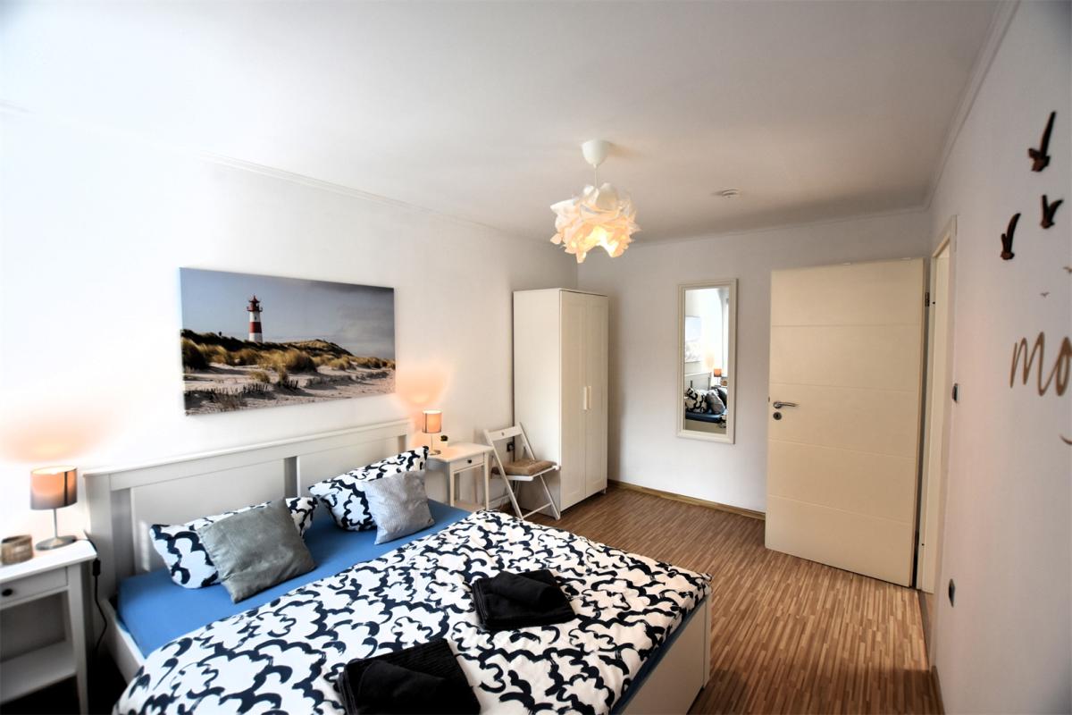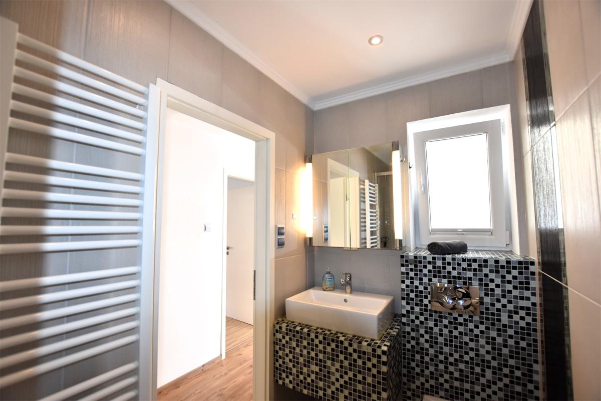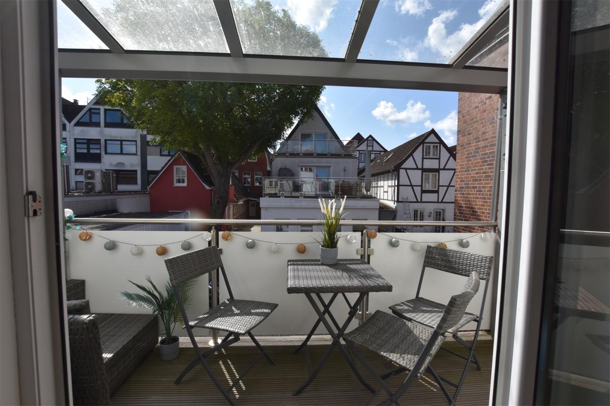 Linker Hand befindet sich ein heller und stilvoller Wohnbereich mit offener Küche. Der Raum bietet ausreichend Stellfläche für eine gemütliche Sitzecke und einen Esstisch. Die L-förmige Küche verfügt über Unter- und Oberschränke sowie Herd mit Ceranfeld und Backofen, Dunstabzugshaube, Geschirrspülmaschine und Kühlschrank mit Gefrierfach. Vis-à-vis der Wohnungseingangstür befindet sich das großzügiger und heller Abstell- bzw. Hauswirtschaftsraum und das Tageslichtbad mit Dusche, Waschtisch, WC, Handtuchwärmer und Waschmaschinenanschluss. Richtung Vorderreihe, zum Innenhof, gelegen, befinden sich die beiden Schlafräume, einer davon mit Balkon. Dieser verfügt über eine Glasüberdachung sodass Regenschutz und Helligkeit gleichermaßen gegeben sind. Durch die Ausrichtung zum Innenhof bleibt man hier vor Neugierigen Blicken der Passanten aus Kurgartenstraße und Vorderreihe verschont. So lässt es sich auf diesem Platz entspannt verweilen, während sich auf der bunten Flaniermeile die Besucher in individuellen Läden, Cafés und Restaurants tummeln. Von den vertrauten Hupsignalen der Pötte, die täglich liebevoll grüßen, wenn sie sich durch den Travekanal schieben, bleibt man hier allerdings nicht verschont.