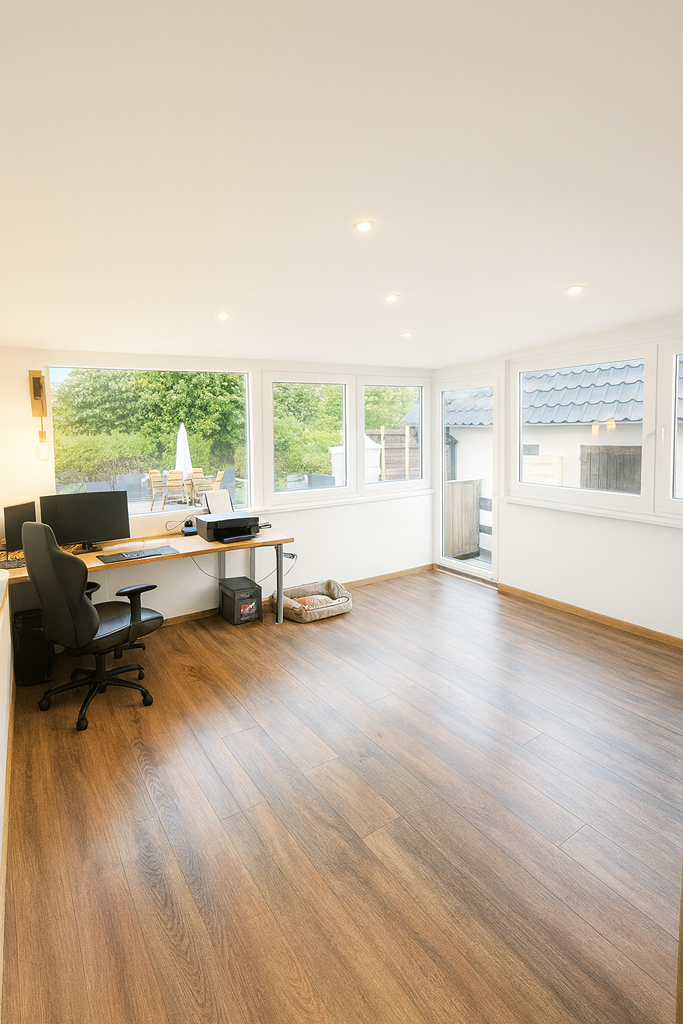 Anbau: vielseitig nutzbar (z. B. als Büro oder Gästezimmer), mit direktem Zugang zum Garten