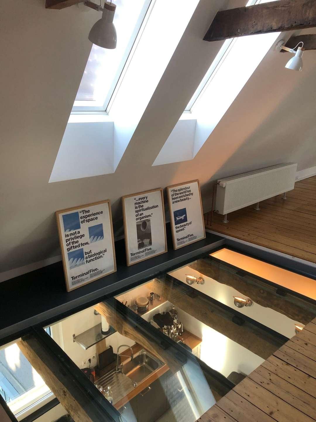 Lassen Sie sich in der Wohnung von dem freien Gefühl eines Luftraumes begeistern, der Ihnen den Blick bis hoch in den First des Hauses ermöglicht. Das Obergeschoss im Loft-Stil bietet Ihnen einen offenen Wohnraum inkl. Küche und Essbereich. Eine weitere Treppe führt Sie ins lichtdurchflutete Dachgeschoss mit einzigartigen Panorama Dachflächenfenstern sowie einer Klassizismus - Kasettendecke mit Blattgold Elementen aus dem 18. Jahrhundert.