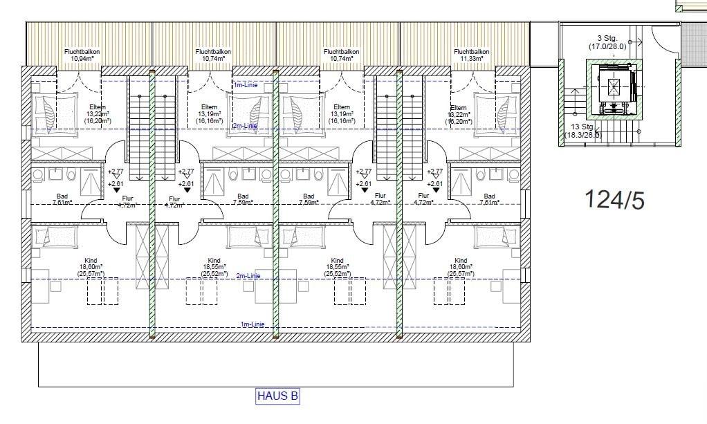 Alle Gebäude sind mit Personenaufzügen ausgestattet und bieten einen komfortablen Zugang zur hauseigenen Tiefgarage, die direkt von den Wohneinheiten aus begehbar ist. Zusätzlich stehen oberirdische Stellplätze zur Verfügung.