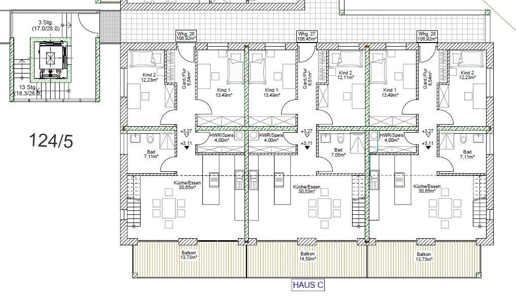 Alle Gebäude sind mit Personenaufzügen ausgestattet und bieten einen komfortablen Zugang zur hauseigenen Tiefgarage, die direkt von den Wohneinheiten aus begehbar ist. Zusätzlich stehen oberirdische Stellplätze zur Verfügung.