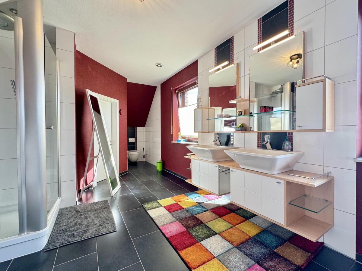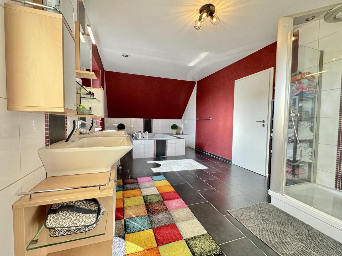 Im Dachgeschoss erwarten Sie drei große Schlafzimmer, ein komfortables Bad mit Dusche, Badewanne, Doppelwaschtisch, WC und vorbereitendem Bereich für eine Sauna sowie eine Extra-Badezimmer für Kinder oder Gäste. Der ausgebaute Dachboden bietet zwei zusätzliche Räume - ideal als Hobbybereich, Spielzimmer oder Büro. Diese beiden Räume wurden in der Wohnfläche nicht berücksichtigt und kommen noch hinzu.