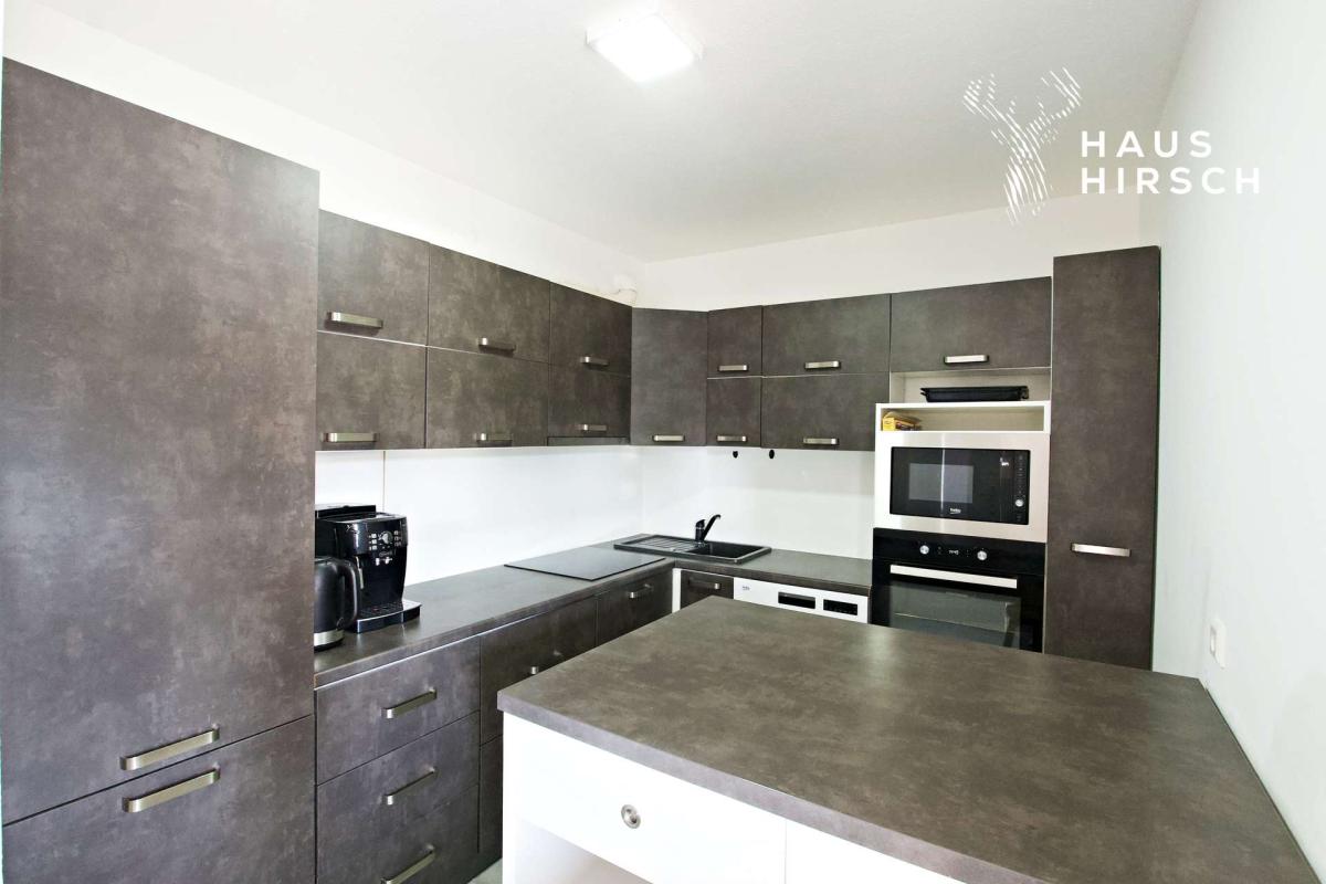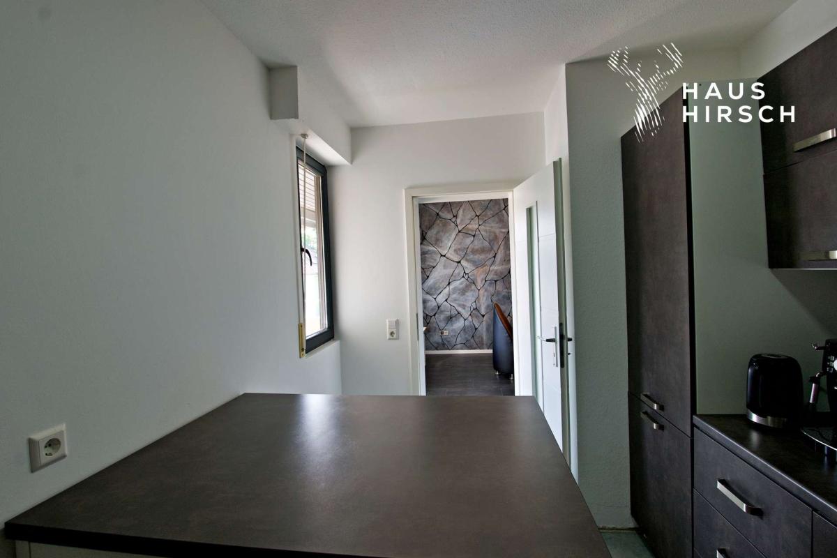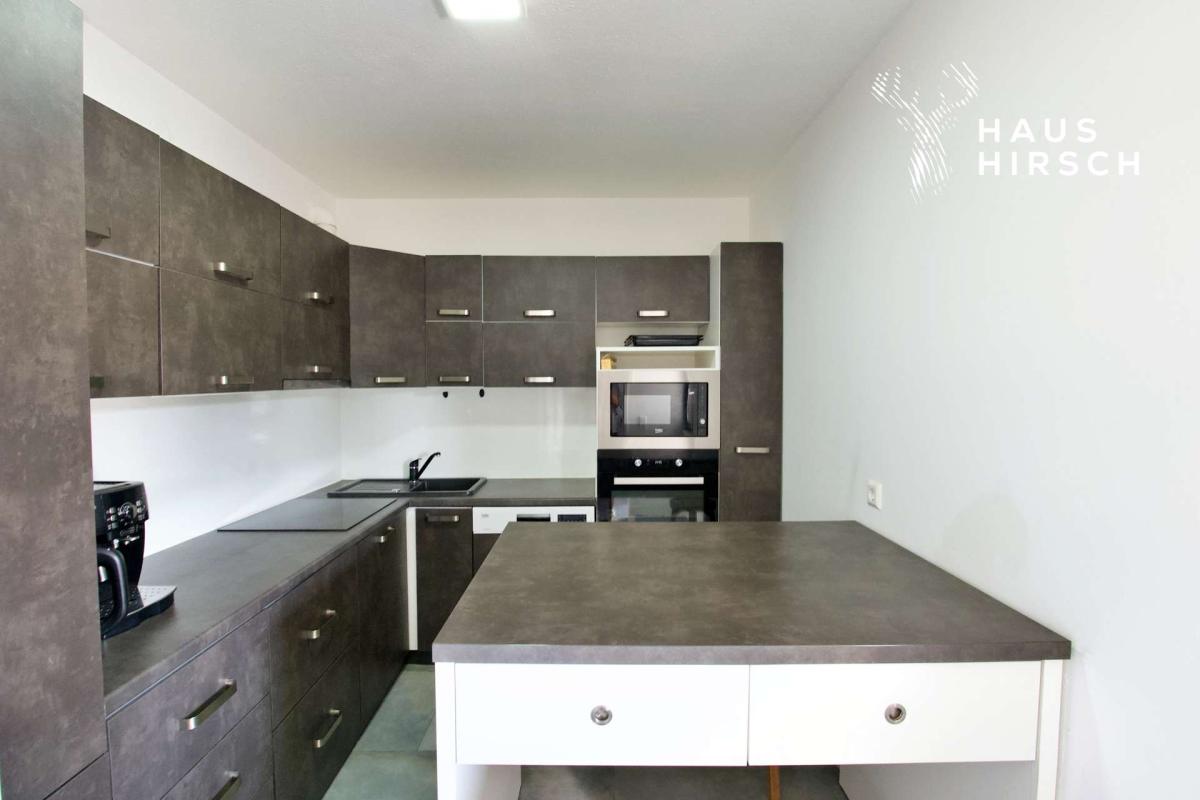 Die moderne EinbaukĂĽche befindet sich in einem separaten Raum direkt angrenzend an den Essbereich und fĂĽgt sich stimmig in das Gesamtbild der Wohnung ein.