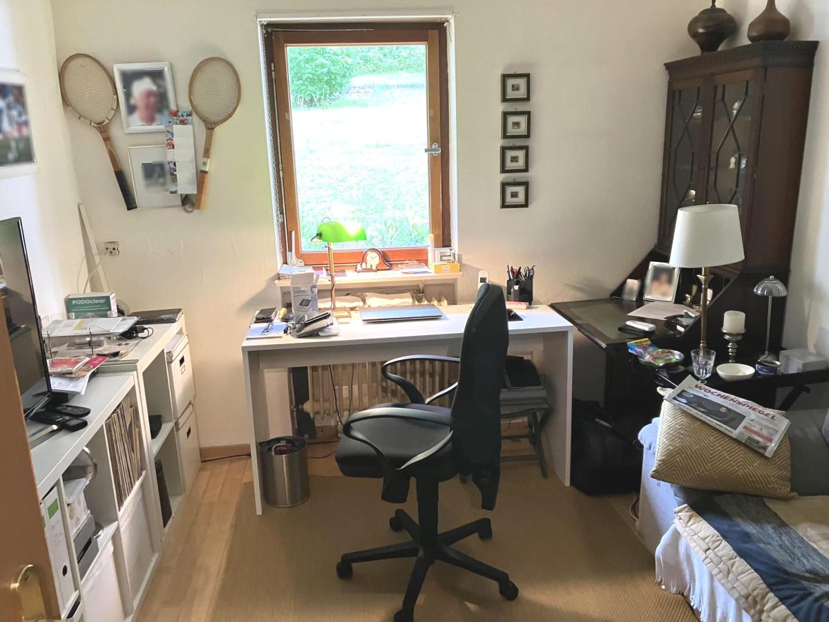 Die Aufteilung ist funktional und zugleich wohnlich gestaltet: Über den zentralen Flur sind alle Räume bequem erreichbar. Ein Arbeitszimmer bietet sich ideal für Homeoffice oder Hobbys an. Das Schlafzimmer verfügt über einen direkten Zugang zur Terrasse und damit in den eigenen Garten. Das Badezimmer ist mit einer Dusche und einer Badewanne ausgestattet, zudem gibt es ein separates Gäste-WC. Die Küche bietet ausreichend Platz und kurze Wege zum angrenzenden Esszimmer, von dem aus ein Zugang auf den Balkon besteht. Das großzügige Wohnzimmer lädt zum Entspannen ein und vervollständigt den Wohnbereich. Im Kellergeschoss steht darüber hinaus ein weiteres Zimmer zur Verfügung, das aktuell als Gästezimmer genutzt wird – perfekt für Besucher oder als zusätzlicher Hobbyraum.