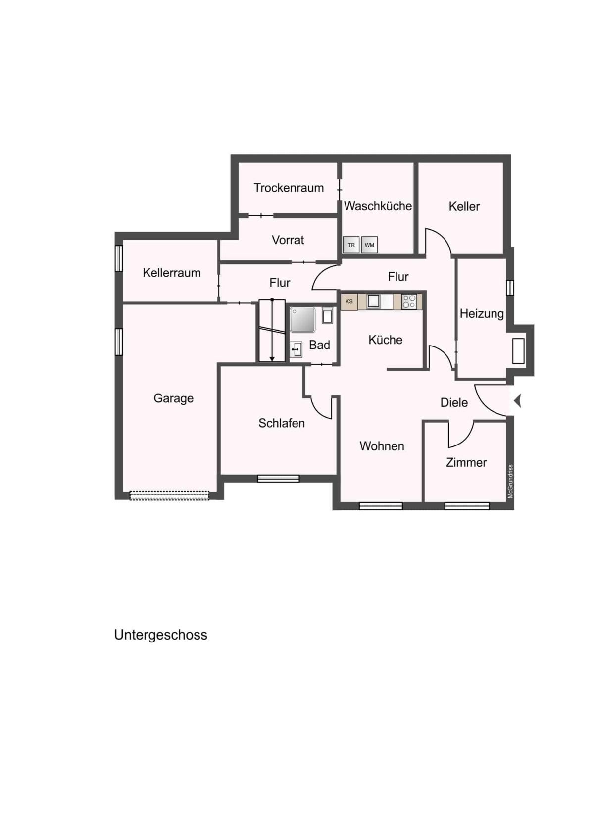 Die Wohnung im Untergeschoss beherbergt ca. 53 m² Wohnfläche und ist bestückt mit einem offenen Wohn-/Ess-/ und Küchenbereich, einem Duschbad sowie zwei weiteren Zimmern, welche zum Schlafen oder zum Arbeiten genutzt werden können.