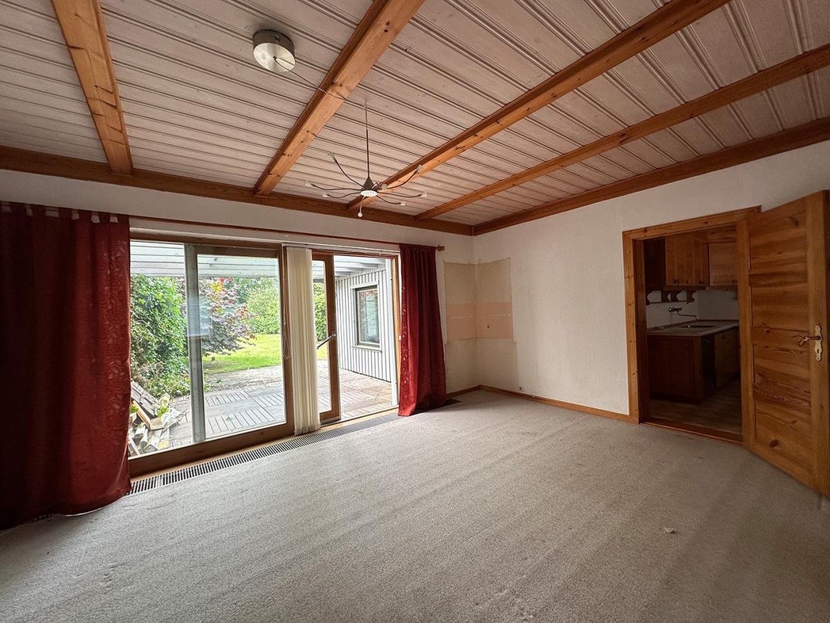 Im Erdgeschoss der Immobilie befinden sich ein großes Wohn- und Esszimmer, welches bei Zimmerbedarf auch wieder in 2 Räume aufgeteilt werden kann, der Flur, der WC- Bereich mit Waschbecken, ein separates Duschbad nur mit Dusche und Waschbecken, die Küche und ein weiterer Raum. Dieser zusätzliche Raum mit ca. 16 m² Nutzfläche ist nach dem damaligen Erwerb ca. Ende der 70er Jahre errichtet worden.