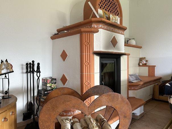 zusätzlich Kaminofen mit Sitzbank im Wohnbereich, Baujahr 1999