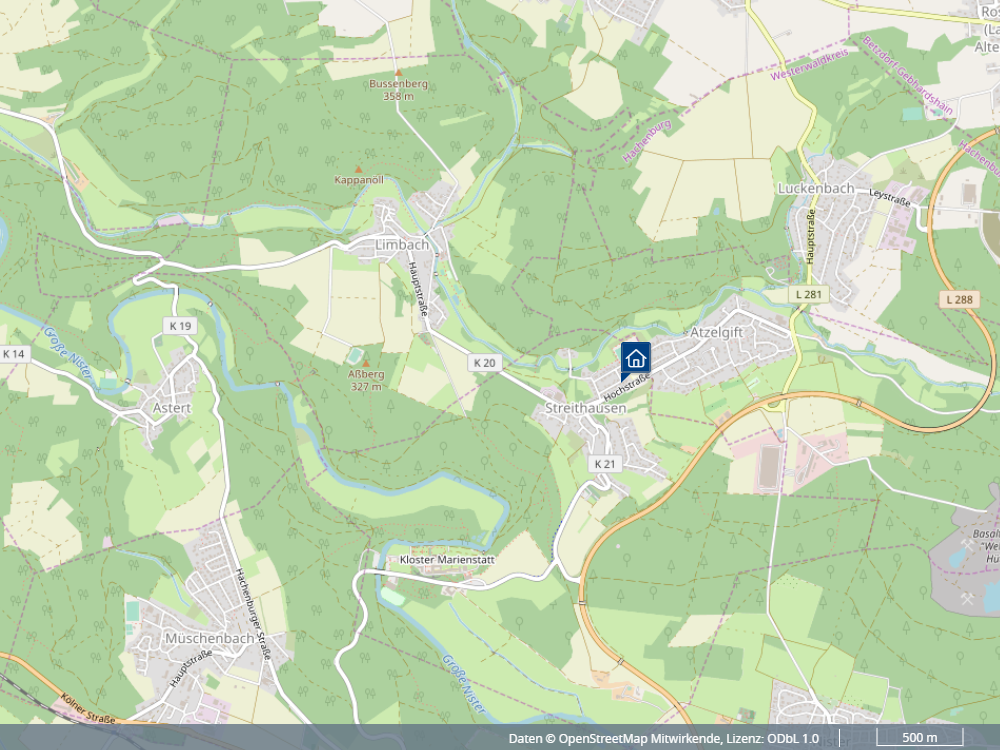 Das Wohnhaus selbst befindet sich in einem gewachsenen ehemaligen Neubaugebiet von Streithausen.