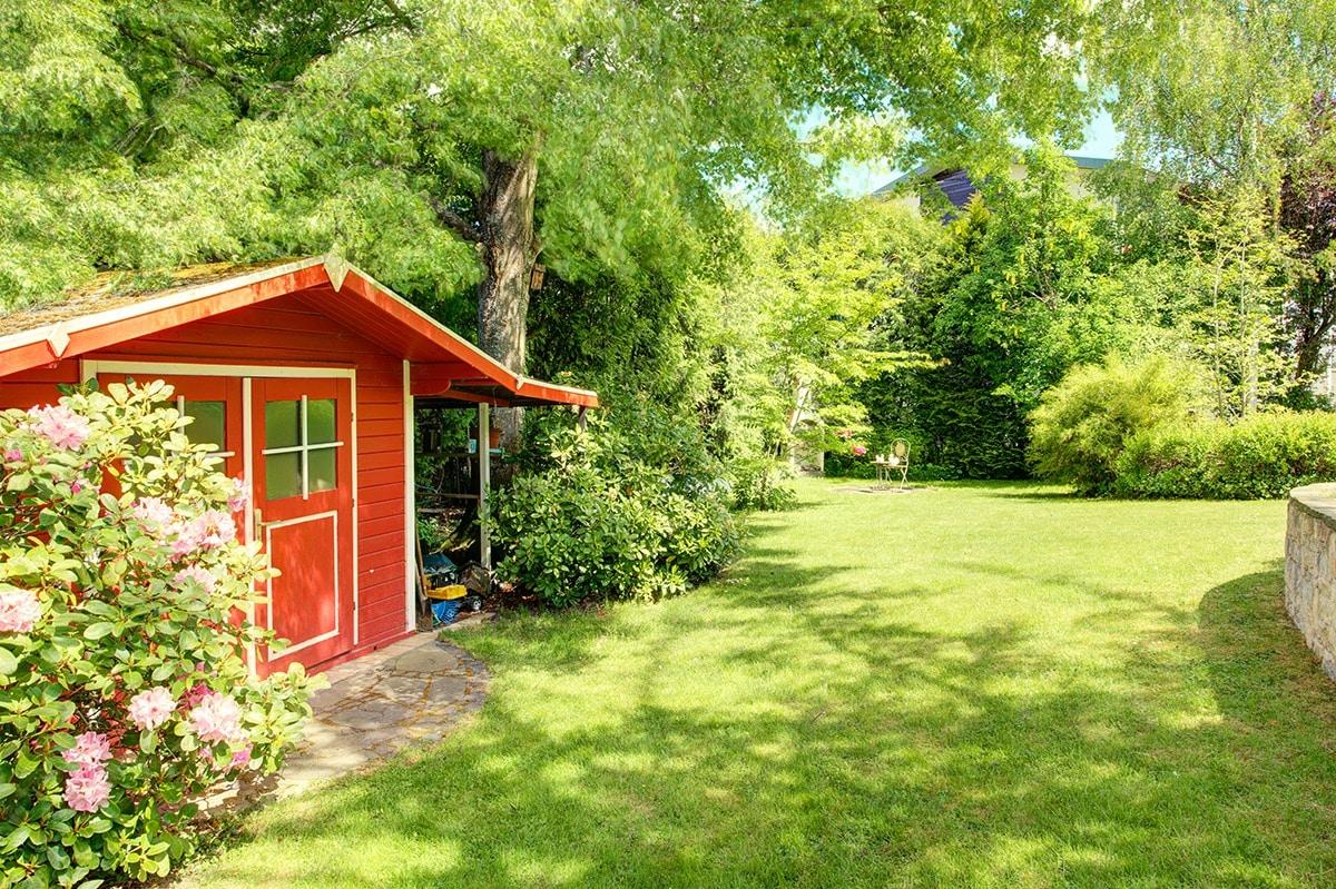 Erwähnenswert sind sowohl der wunderschön angelegte und nicht einsehbare Wohngarten sowie die großzügigen Wohnterrassen. Für Familien mit Kindern eine tolle Oase zum Spielen, Toben und auch zum Verweilen. Zum Wohngarten gehören zudem ein schöner Sandplatz mit Bachlauf sowie ein hübsches Gartenhaus. Das Grundstück ist komplett eingezäunt.