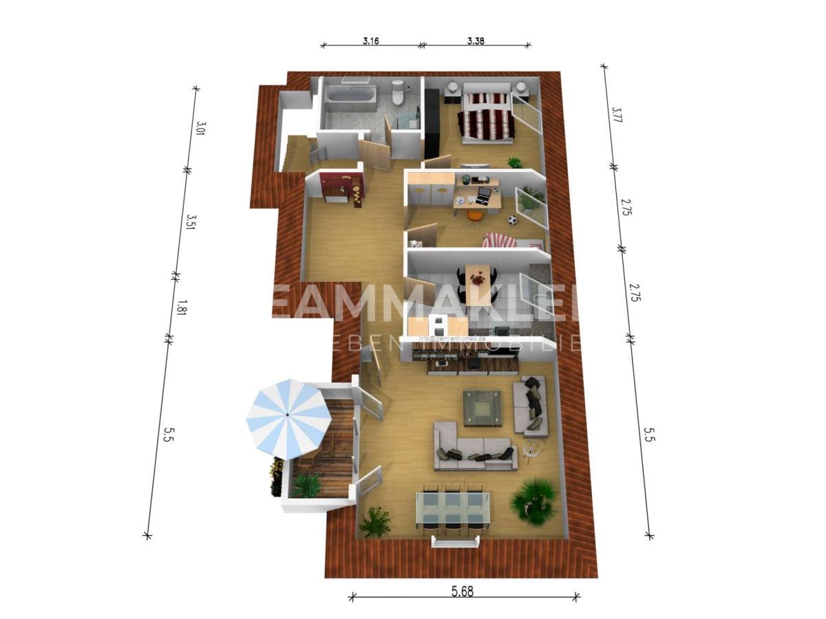 Die Käuferprovision ist mit Abschluss des notariellen Kaufvertrages verdient und zur Zahlung fällig. Mit dem Verkäufer besteht ein Maklervertrag über eine Provision in gleicher Höhe gemäß § 656c BGB (Doppeltätigkeit).
