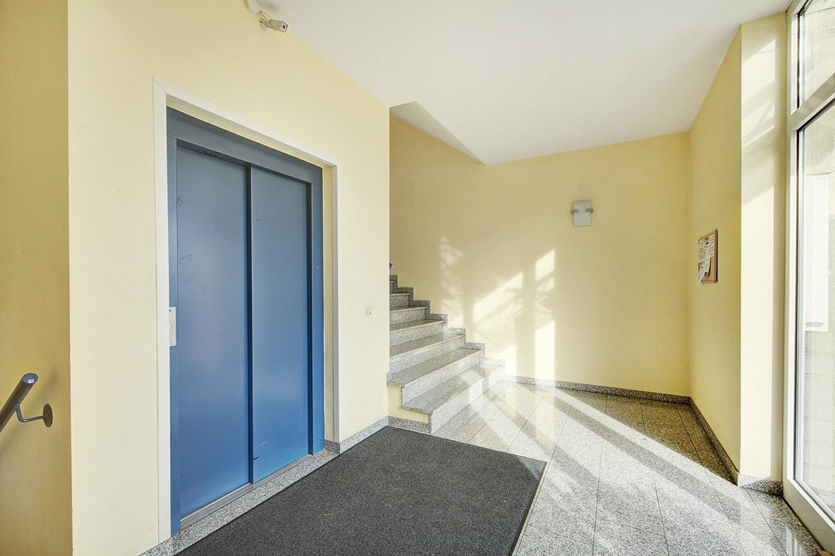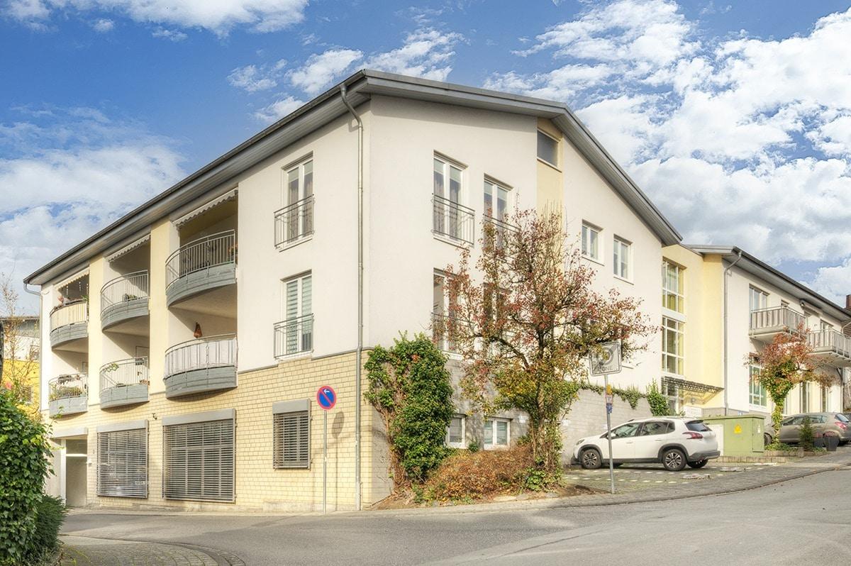 Eigentumswohnung mit großzügigem, südwestlich ausgerichteten Balkon, einer Aufzugsanlage und einem Tiefgaragen-Stellplatz befindet sich im Obergeschoss bzw. in Hochparterre eines gepflegten Wohn- und Geschäftshauses (7 Wohneinheiten sowie 2 Gewerbeeinheiten).