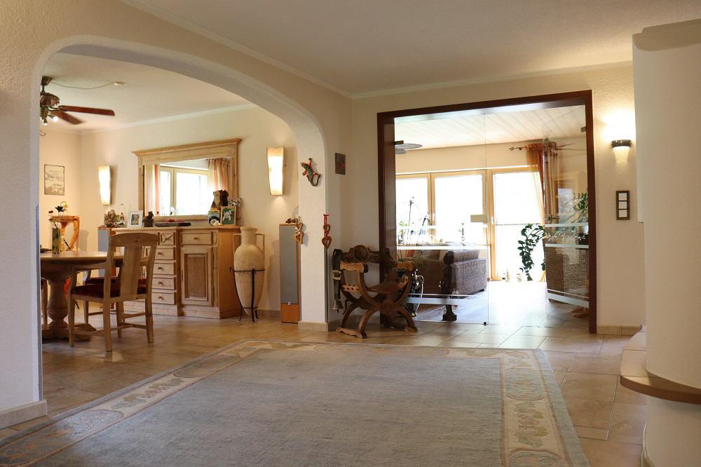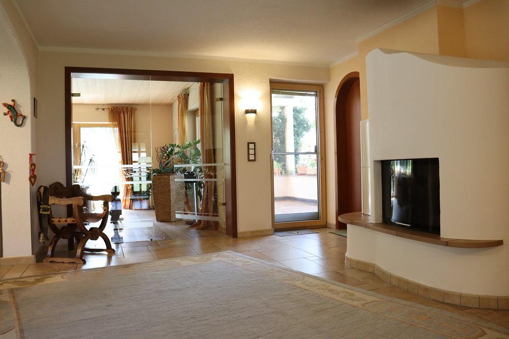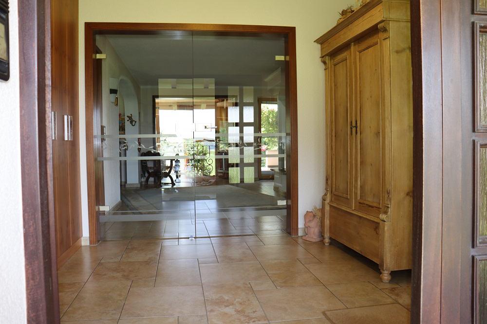 - Hochwertige Glastüren im Windfang- und Wohnzimmerbereich