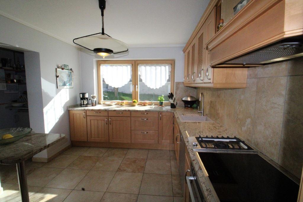 Vom Flur aus geht es in die Küche, die aus Vollholz im Landhausstil und einer Granitplatte 2009 eingebaut wurde.