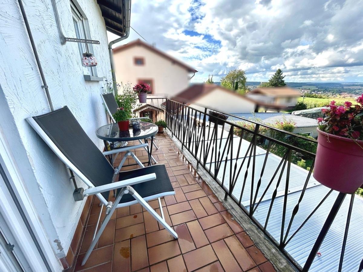 Der Balkon ermöglicht einen Überblick über das Grundstück sowie eine traumhafte unverbaute Aussicht.